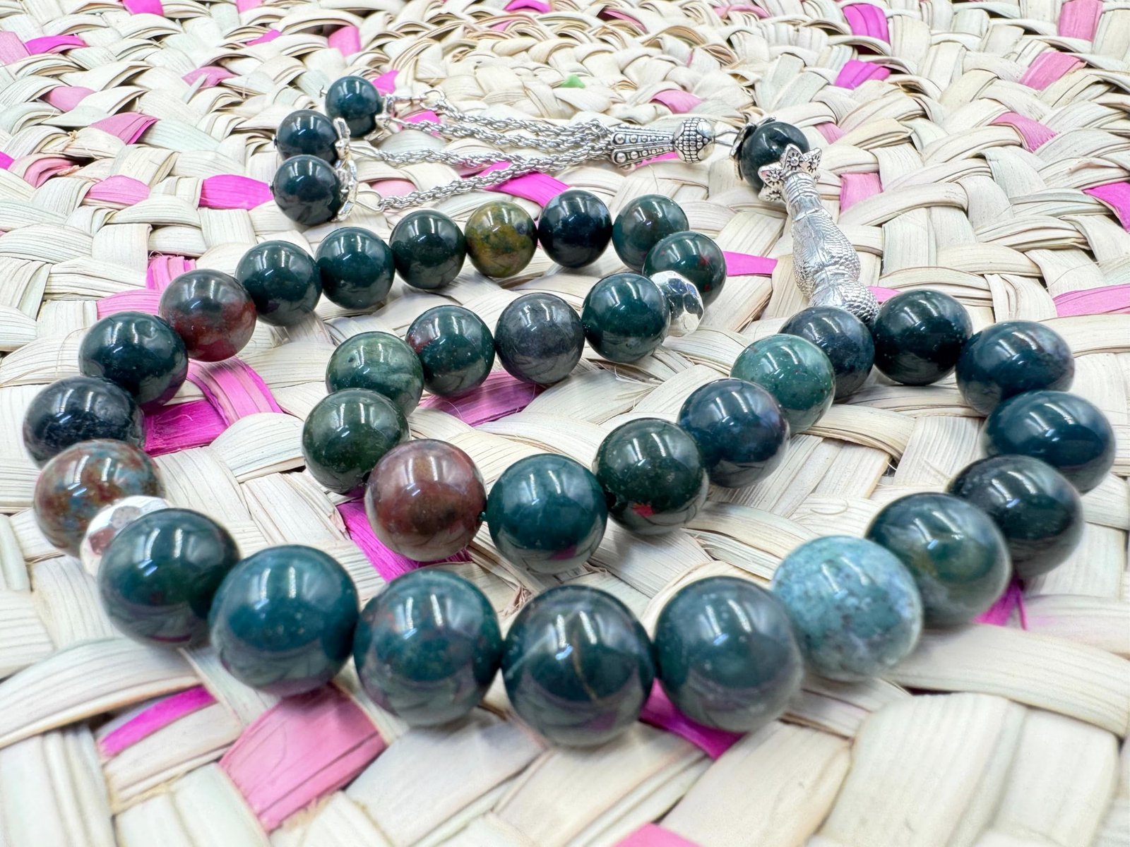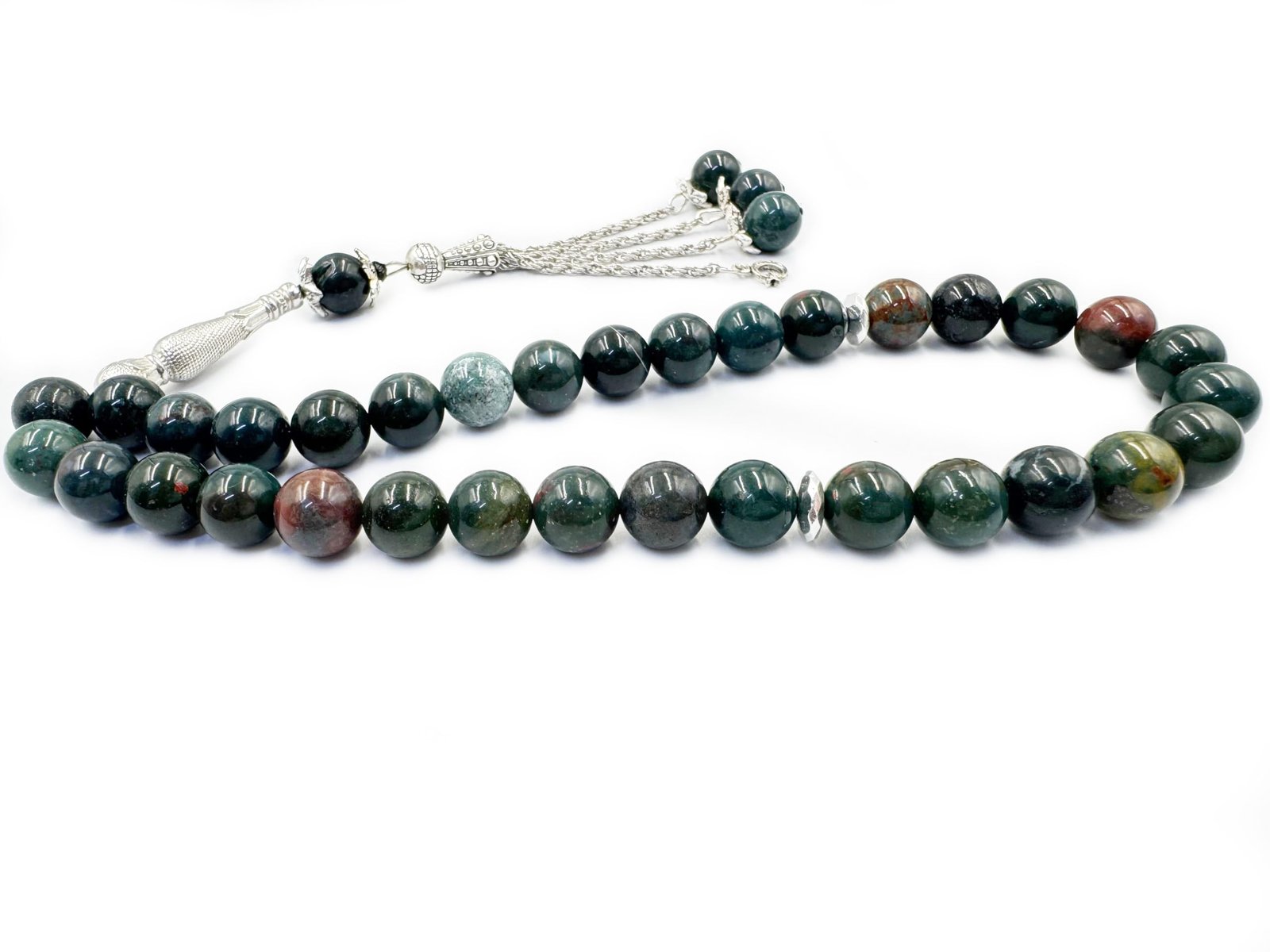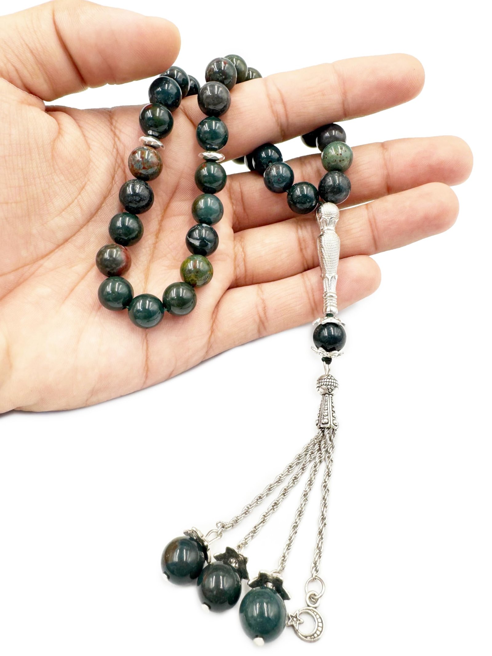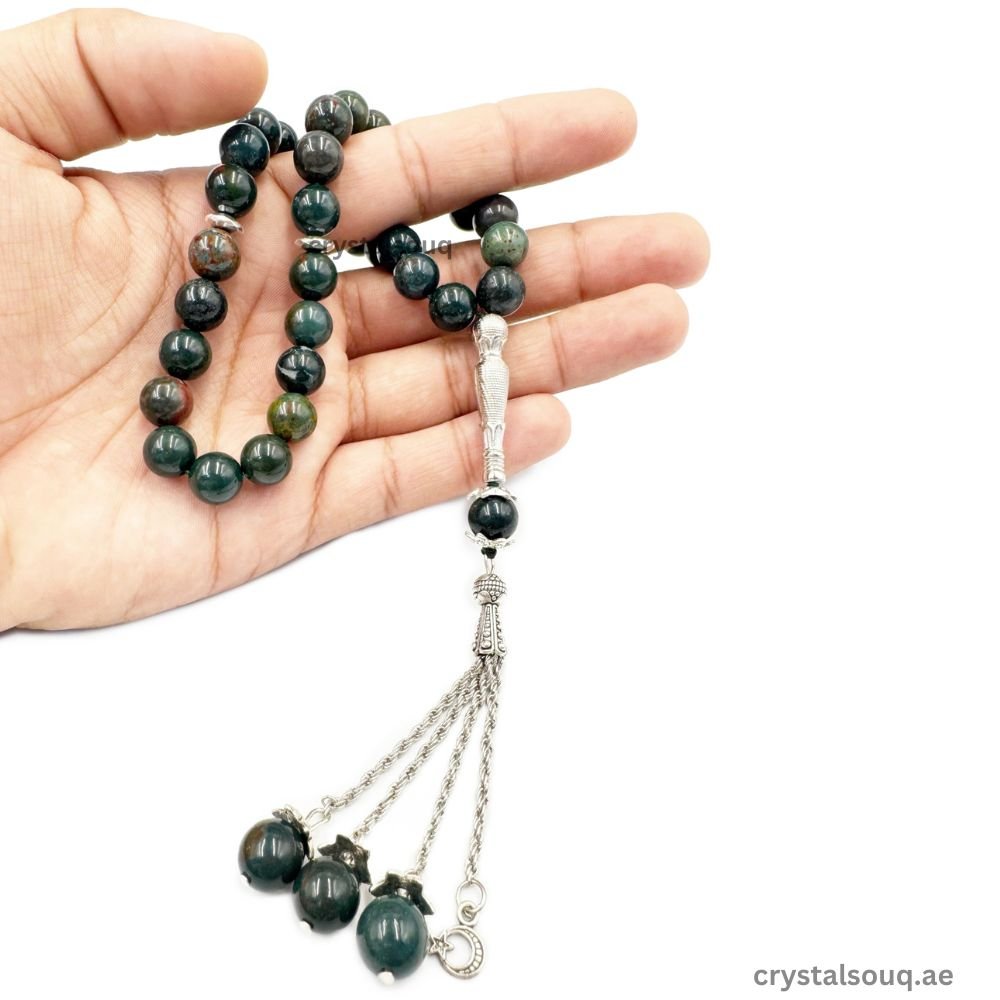 Natural Bloodstone Tasbeeh – 33 Beads Islamic Prayer Beads with Velvet Box