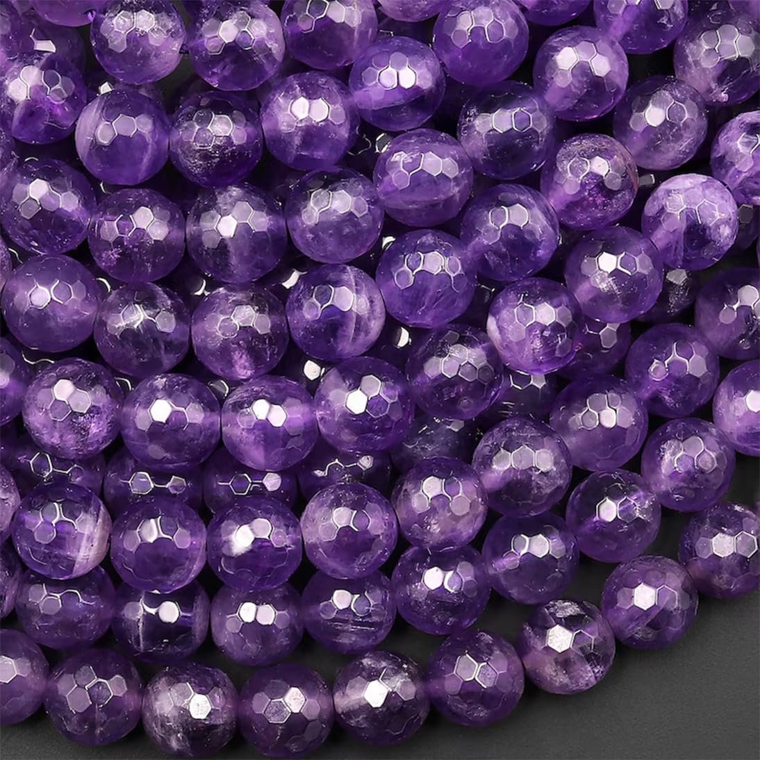- Amethyst Stone Bracelet : This amethyst stretch bracelet is about 7″ around. It’s comfortable to wear and stylish!! The micro faceted round, dark purple beads are a nice 8mm in size – great for stacking with other bracelets!