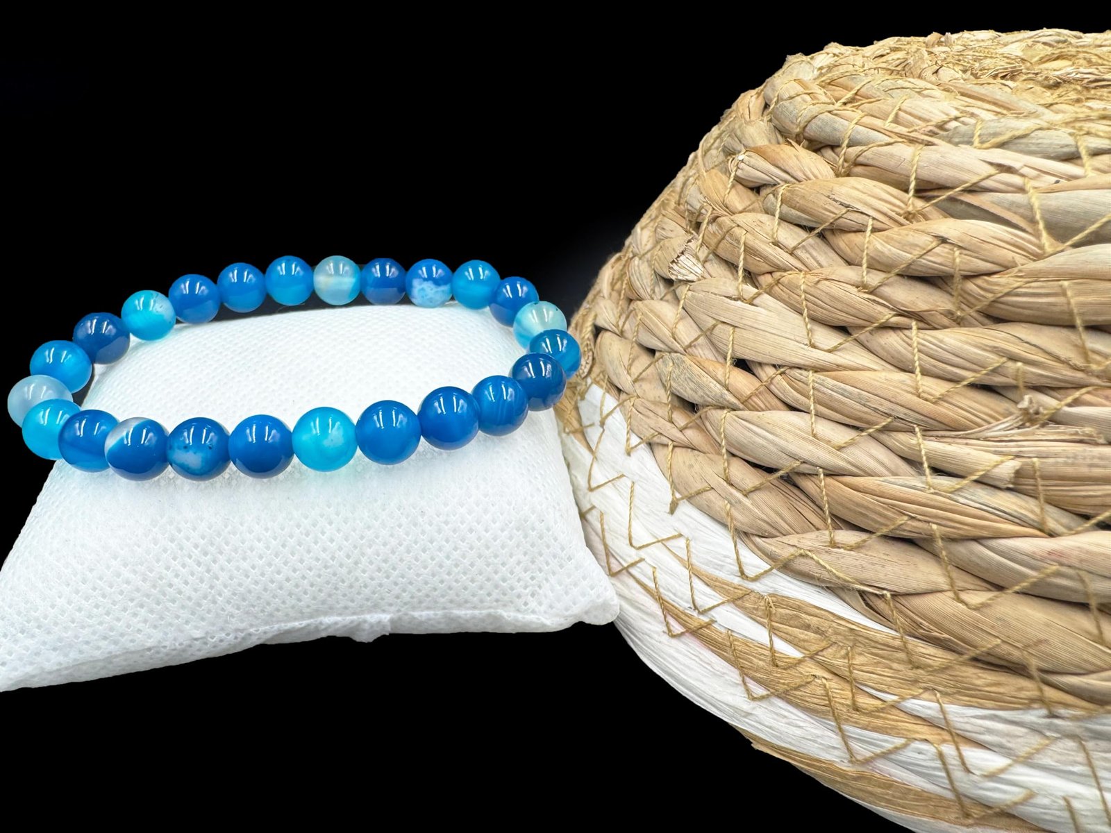 - AUTHENTIC BLUE AGATE GEMSTONES: Handcrafted from genuine blue agate stones, known for enhancing communication and expression.