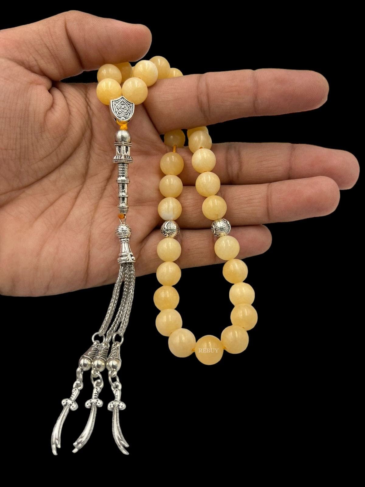Calcite 33 Beads Stone Prayer Tasbih Misbaha | For Serenity, Peace & Positive Energy, Gift Box Included | Islamic Gift, Bracelet or Necklace, Premium Craftsmanship | Bead Size 10 mm