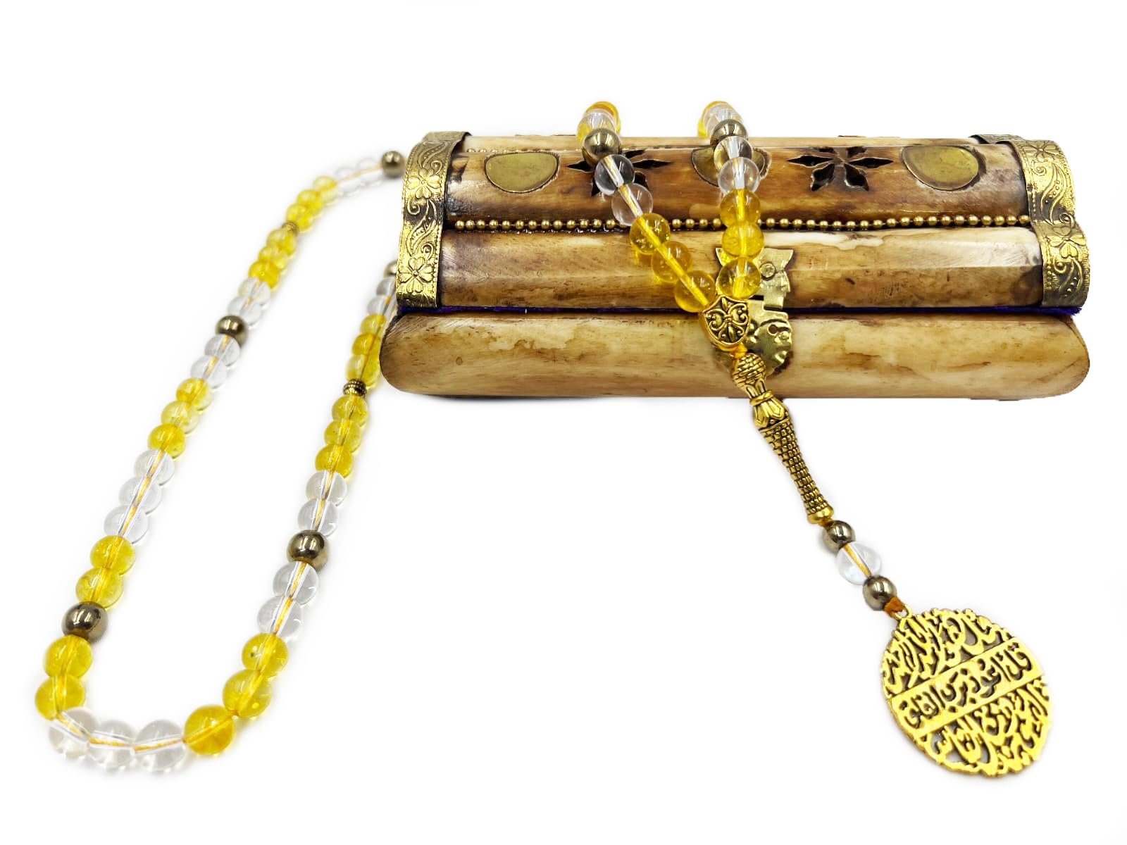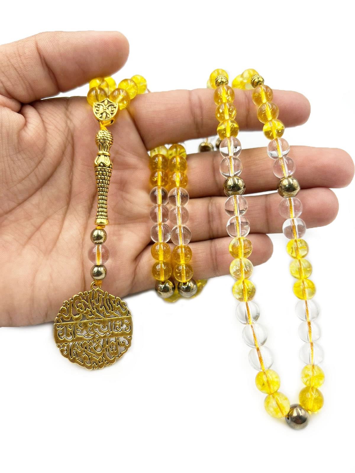 A Conduit for Light: The combination of yellow and clear stones symbolizes sunlight and purity. Using this Tasbih is a reminder to “live in the light,” releasing detrimental thought patterns and embracing optimism.