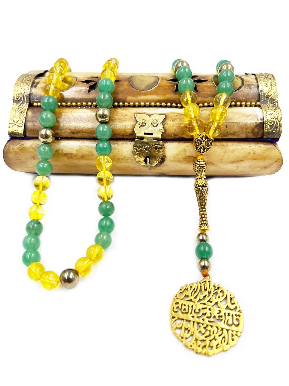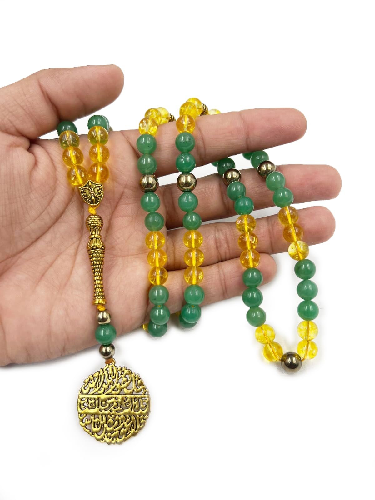 Crystal Souq Natural Citrine & Green Aventurine 99-Bead Tasbih (8mm) – Luck & Prosperity Gemstone Misbaha with Gift Box