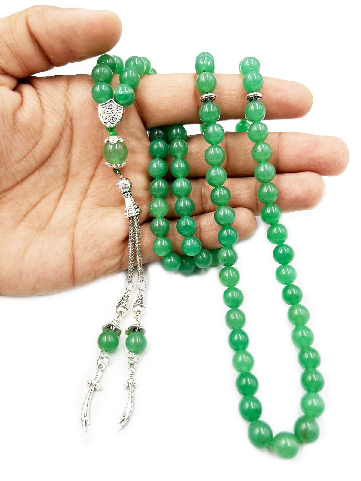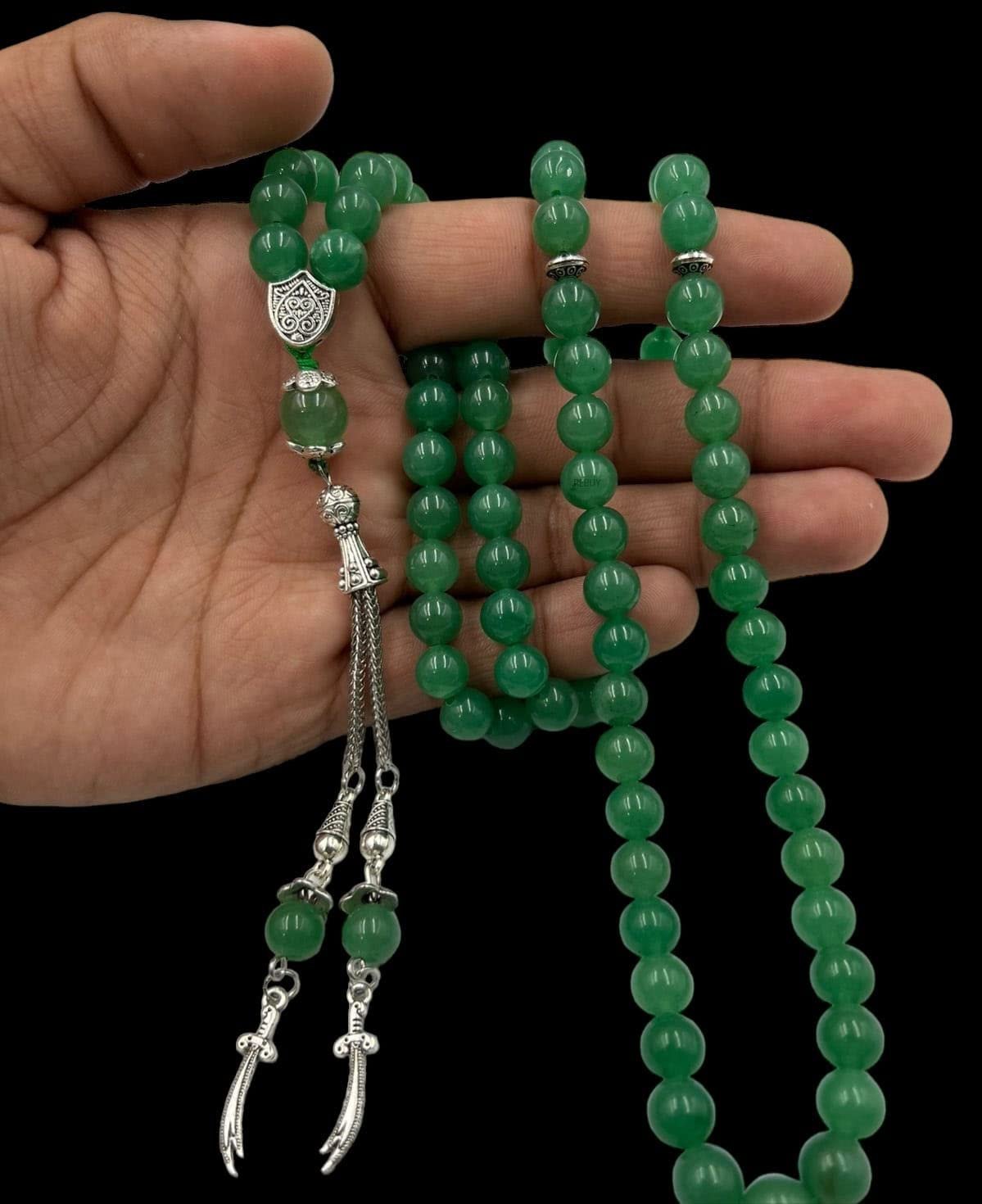 Find your emotional center with the Crystal Souq Green Aventurine Tasbih. This meticulously crafted Misbaha is made from natural Green Aventurine, a stone celebrated not only for its shimmering beauty but for its ability to comfort the heart and open doors to new possibilities.