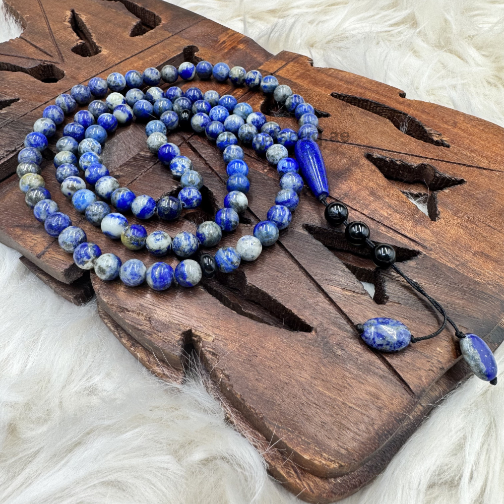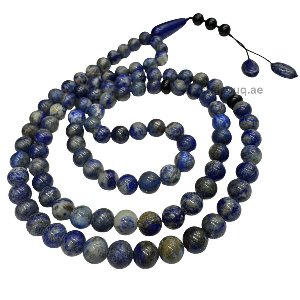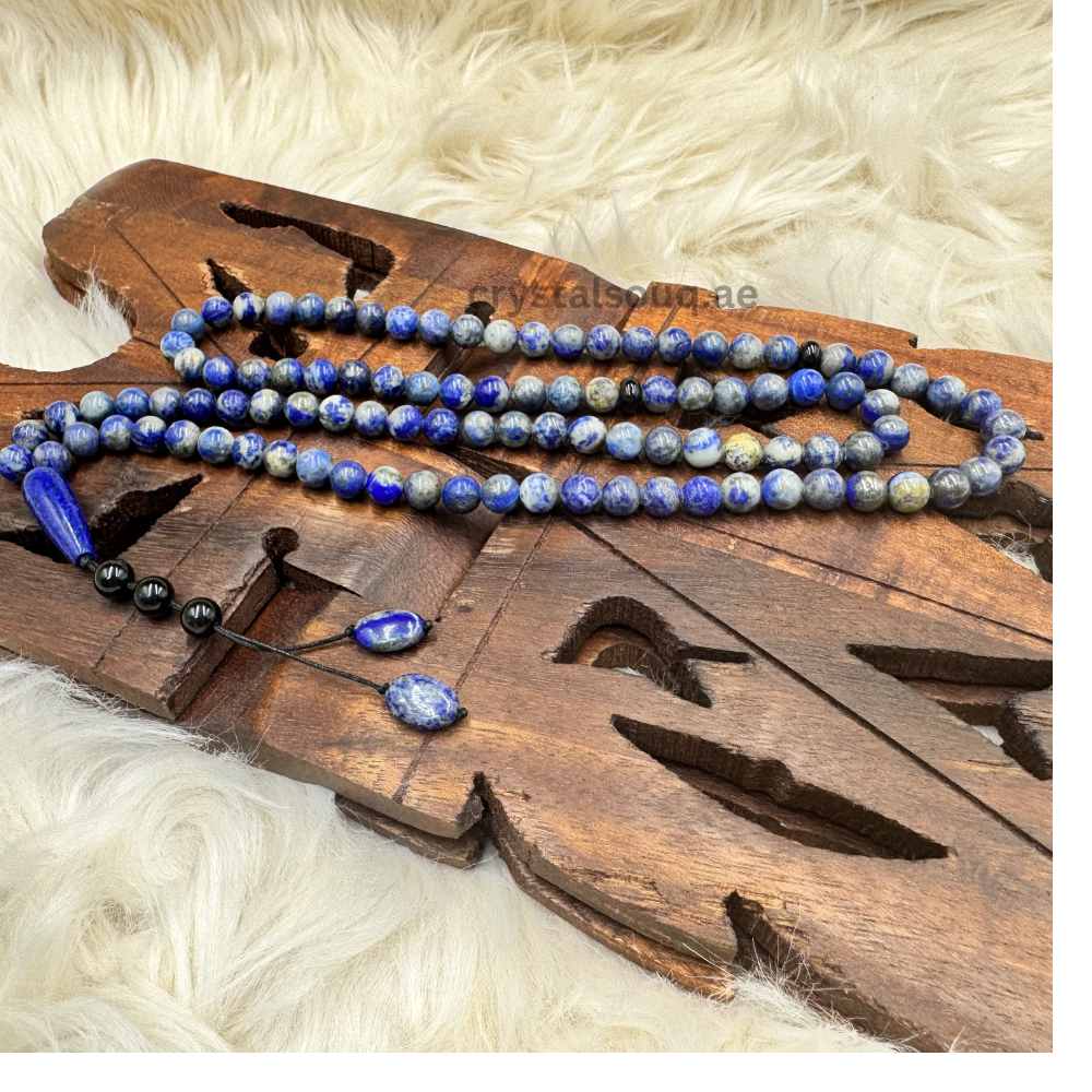 Elevate your spiritual practice with the Crystal Souq Lapis Lazuli 99-Bead Tasbeeh. Revered for thousands of years as a symbol of royalty and spirituality, Lapis Lazuli is a stone of deep truth. This full-length Misbaha allows for a complete cycle of prayer without interruption, aiding in deep meditation and focus.