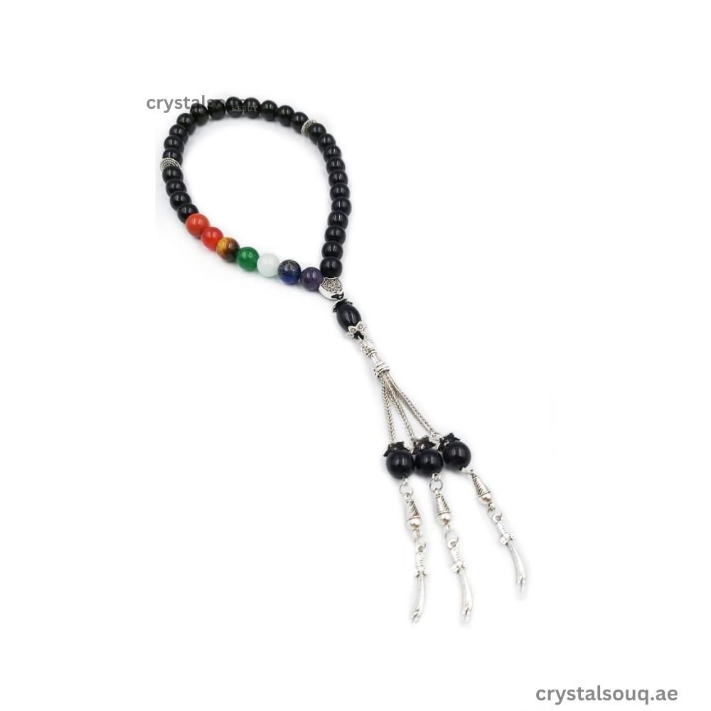 Genuine Black Tourmaline Stone 33 Beads 7 Chakra Tasbeeh