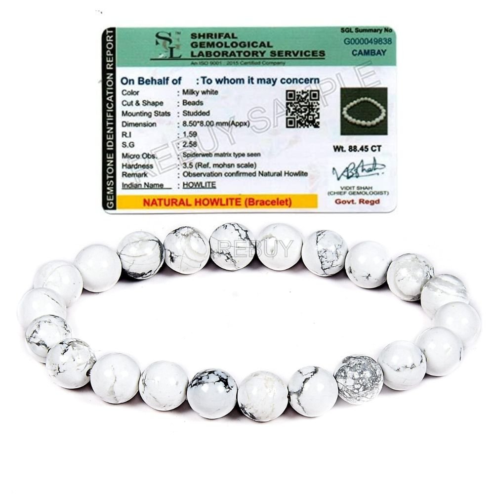 • Bracelet Size: A beautiful bracelet crafted from Howlite Stone. 8 mm thick beads on a stretchable bracelet, fits most wrists, both Men & Women, About 7.5 inch in size. If you require the same bracelet in any particular size, you can message us for customization also.