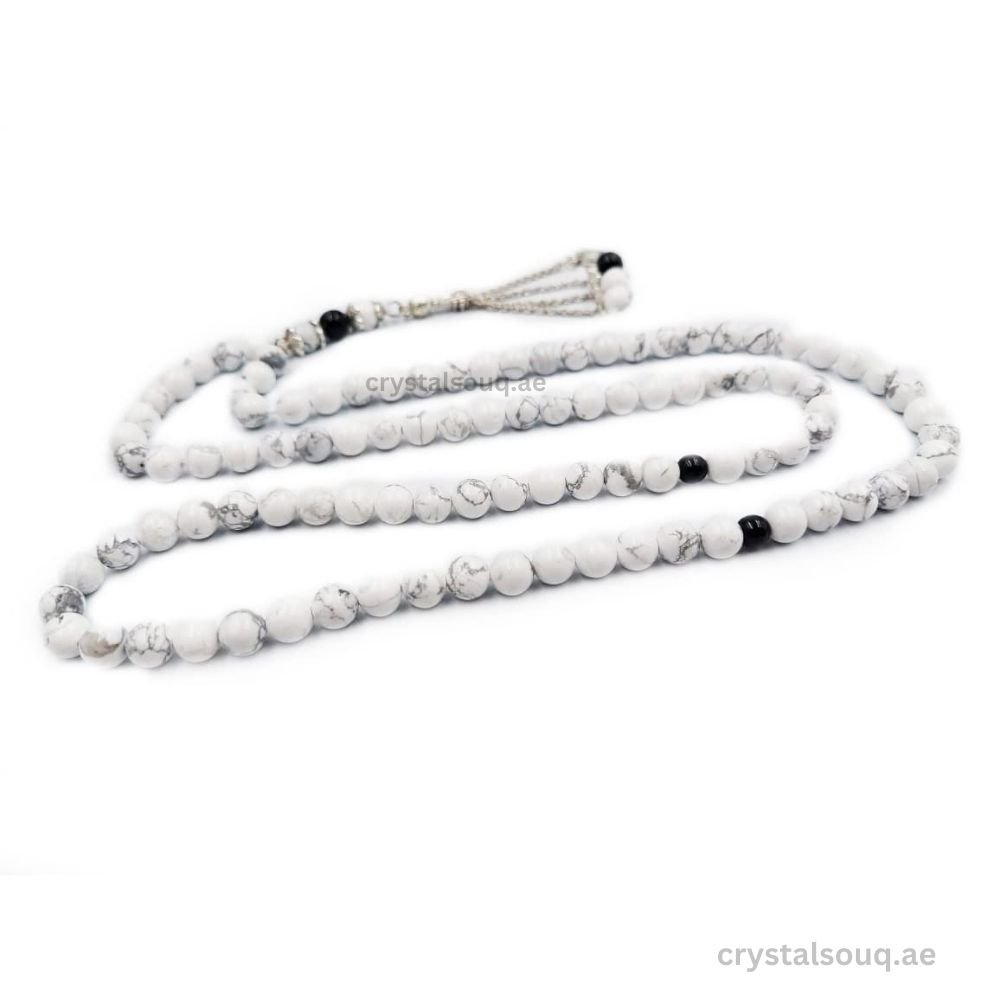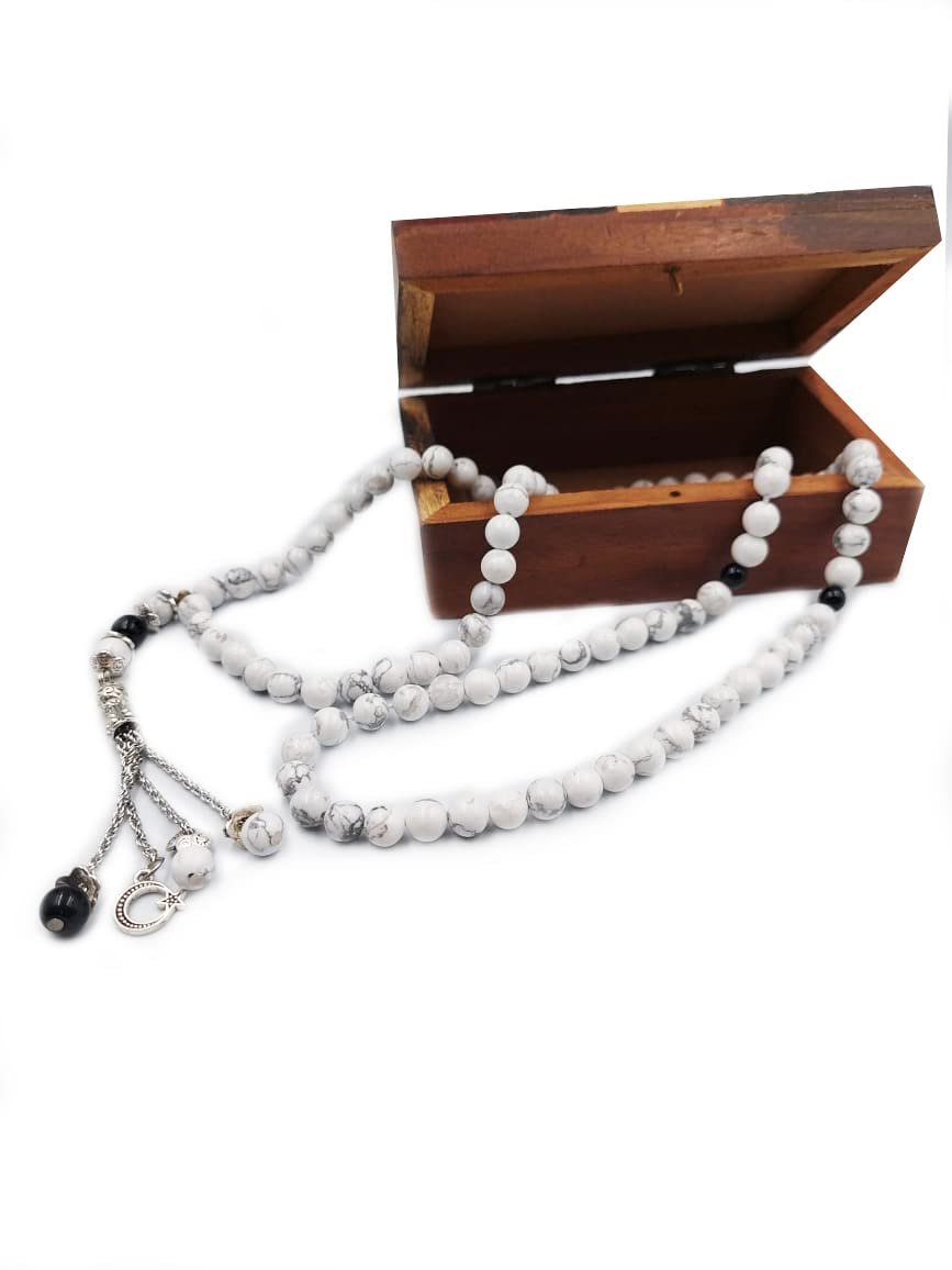 Howlite Gemstone 99 beads Islamic Prayer Beads Misbaha Stone Tasbih Tasbeeh, Stone Howlite, Bead Size 8 mm, Wooden Gift Box