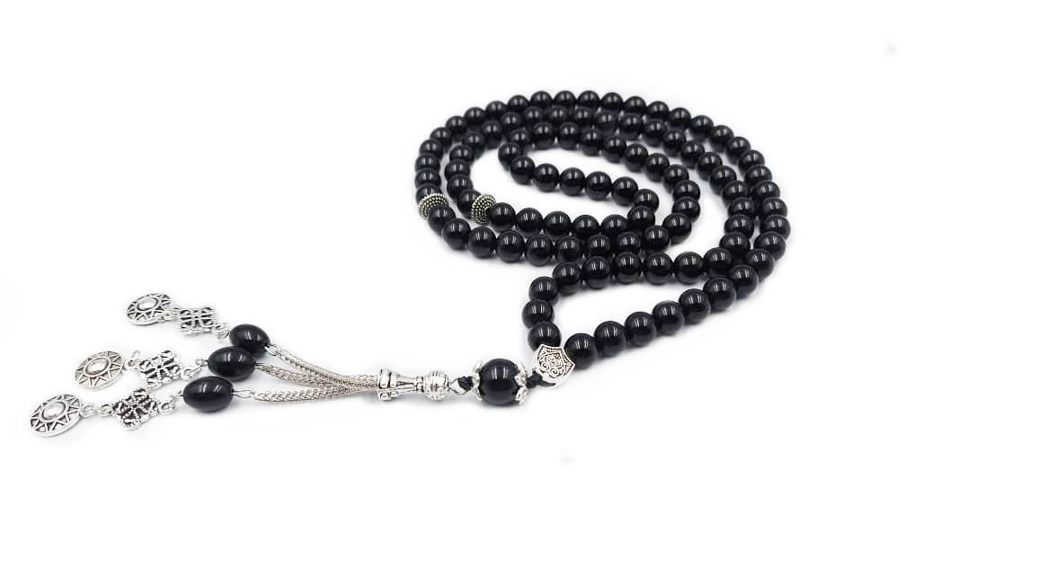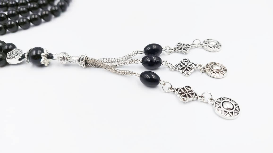 Islamic Religion Tasbeeh Beautiful Misbaha Beads Natural Black Onyx Tasbih Tasbih for Muslim Prayer 99 Beads for Men & Women