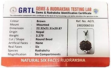 Lab Certified 6 Mukhi Rudraksha Pendant (Nepali) – Silver Capped Lord Kartikeya Bead for Confidence & Communication
