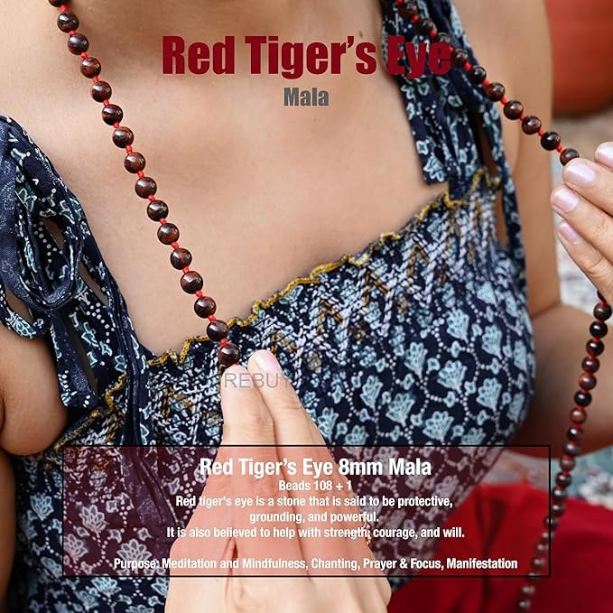 Ideal for both men and women, this Mala is a versatile accessory. Whether you are seeking to heal emotional wounds or simply want a striking piece of jewelry that radiates strength, the Red Tiger Eye is a timeless companion for your journey.