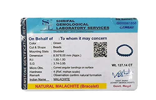 Lab Certified Natural Malachite Stone Beads Bracelet