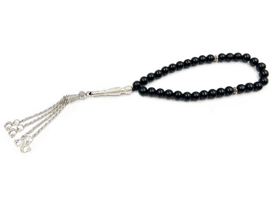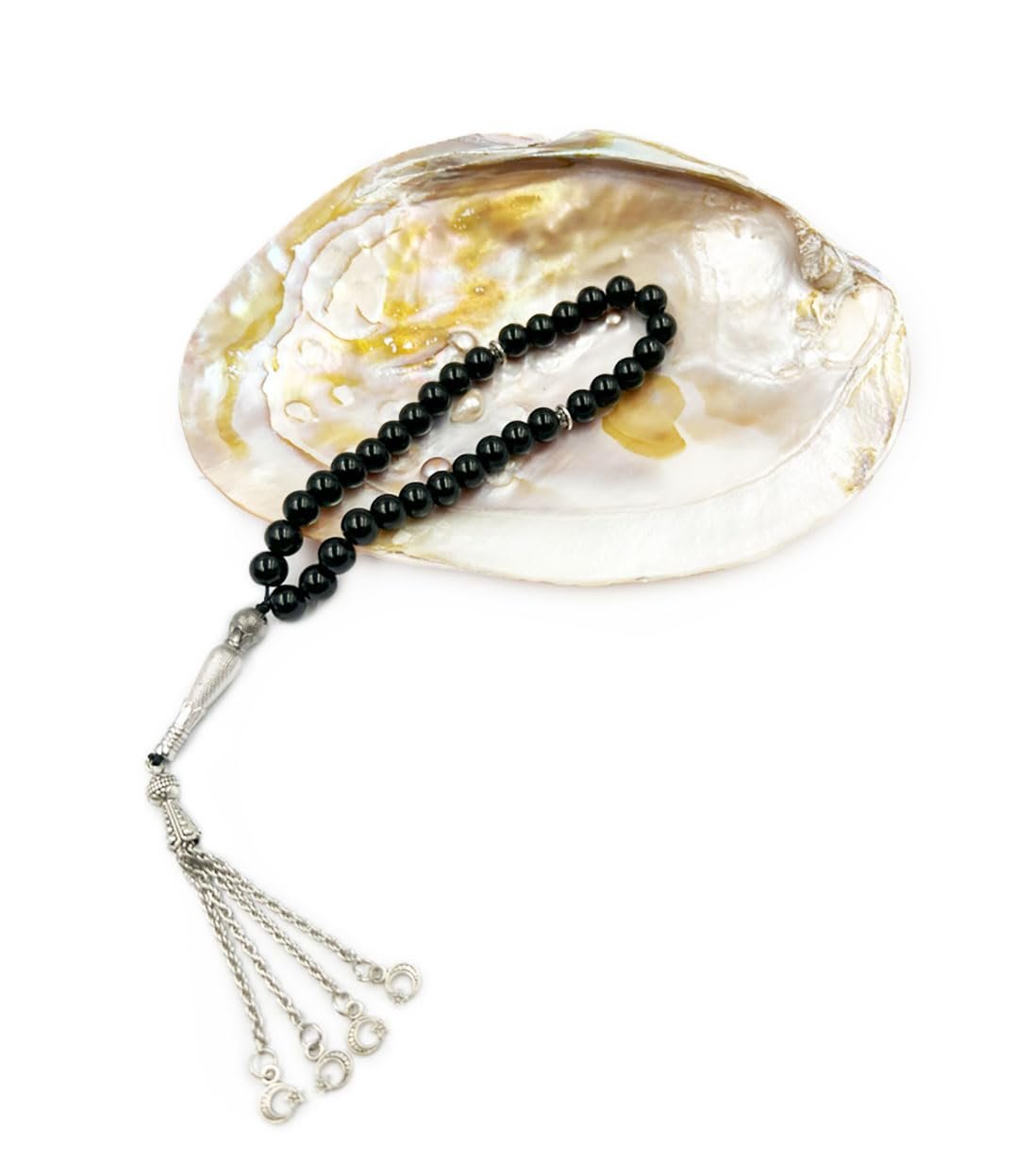 Natural Black Tourmaline Gemstone 33 Beads Turkish Prayer Tasbih | Misbaha Rosary Tasbeeh | Islamic Gift, Bracelet or Necklace, Premium Craftsmanship | Pack of 1