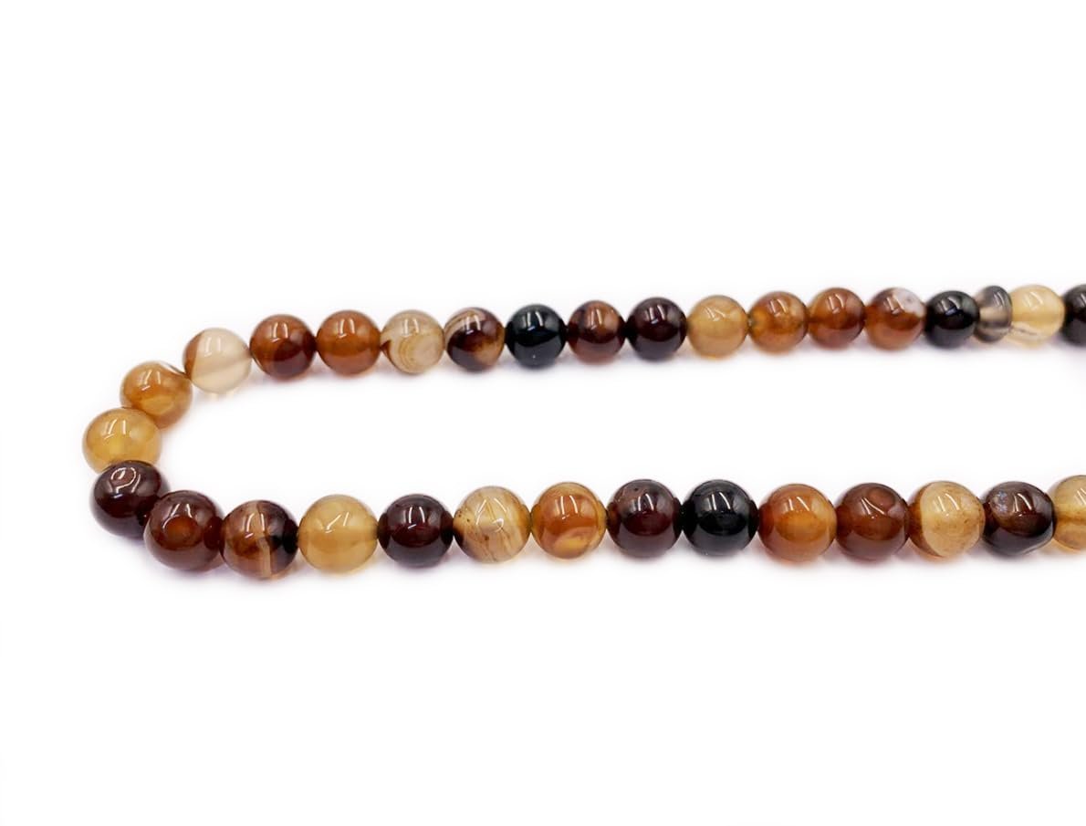 • Premium Botswana Agate: Each bead is a miniature work of art, featuring unique natural banding (stripes) in soothing shades of brown, grey, and apricot. This variety of Agate is considered royalty among agates for its fine, intricate patterns.