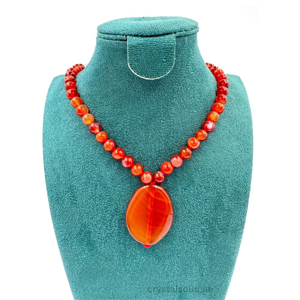 Natural Carnelian Beads & Pendant Necklace – Healing Crystal Jewelry with Adjustable Macramé Slider for Women