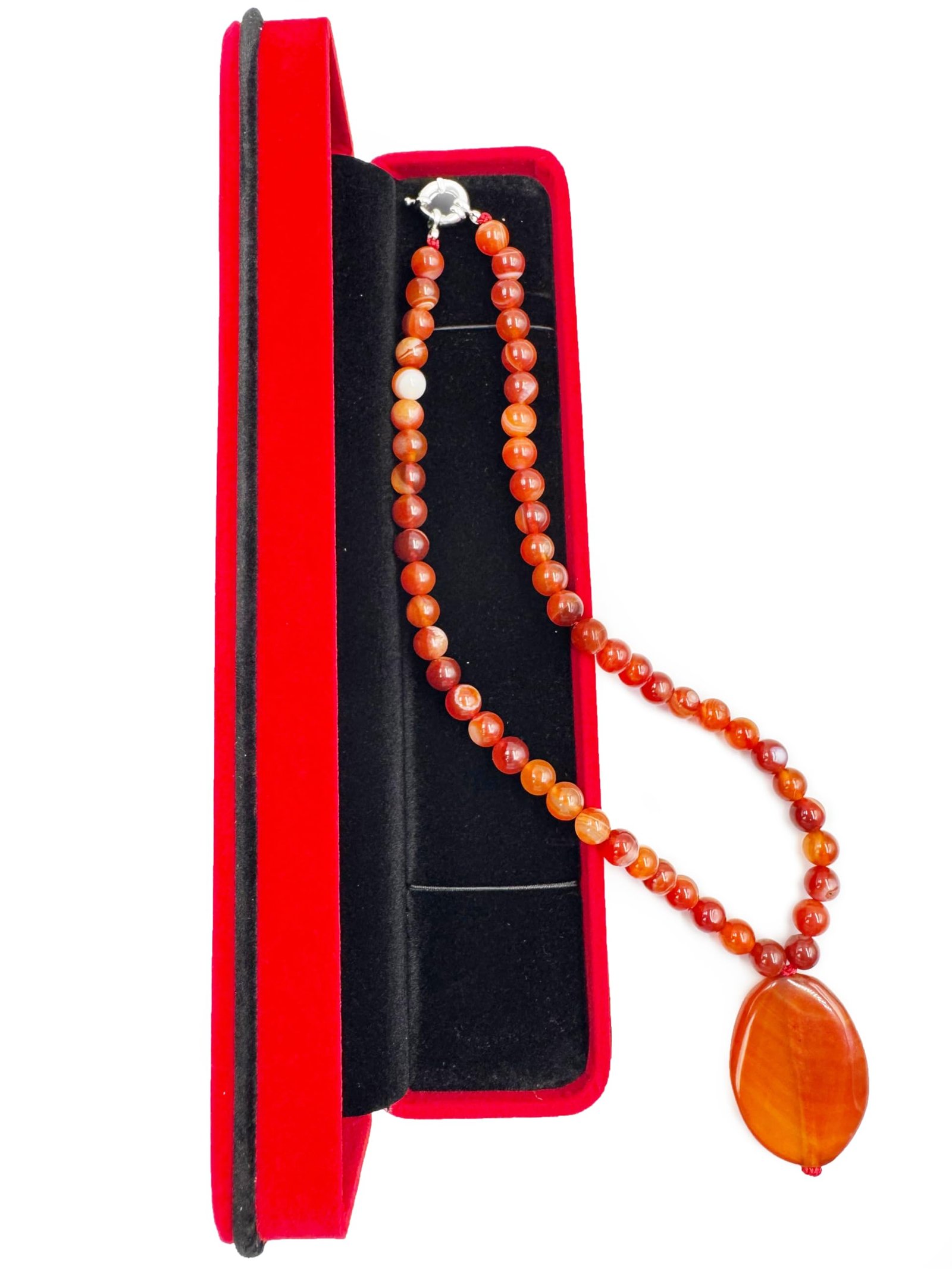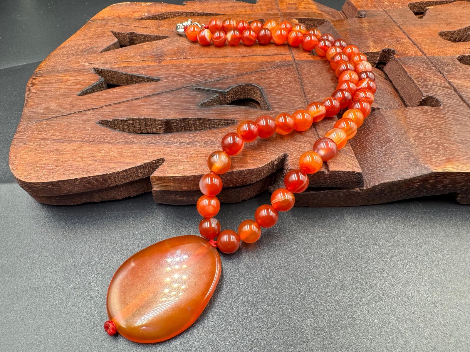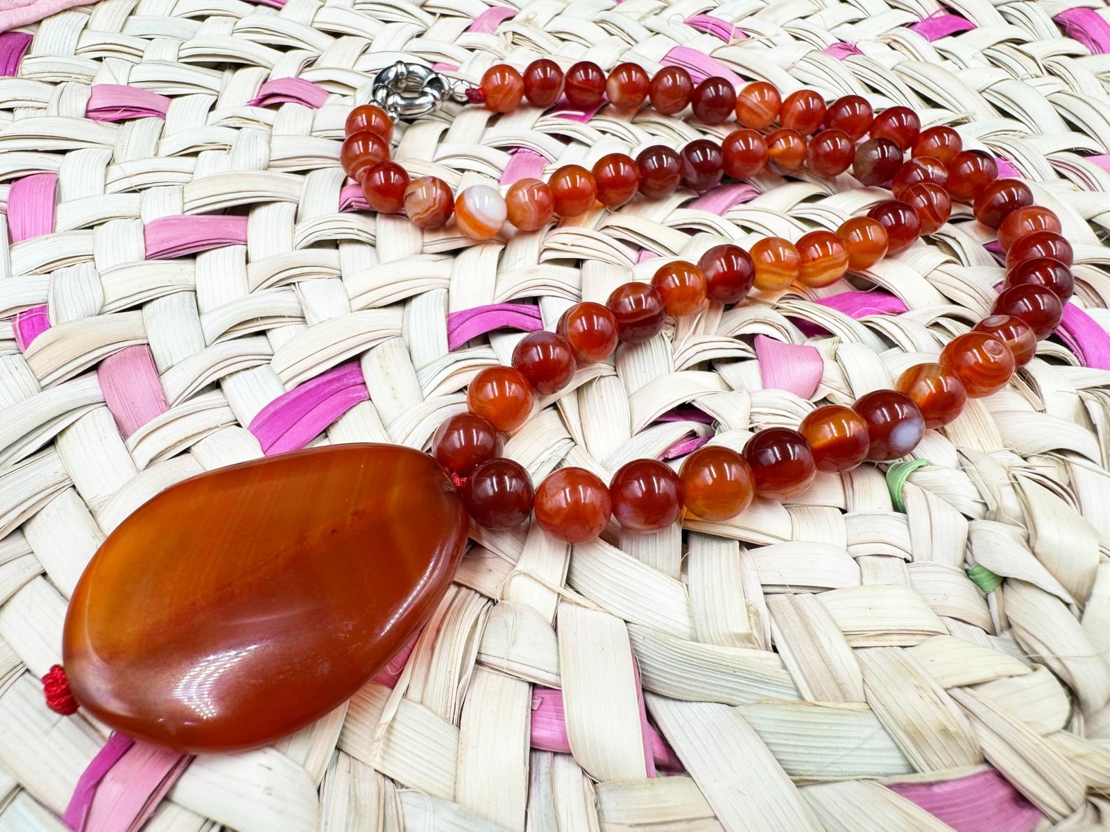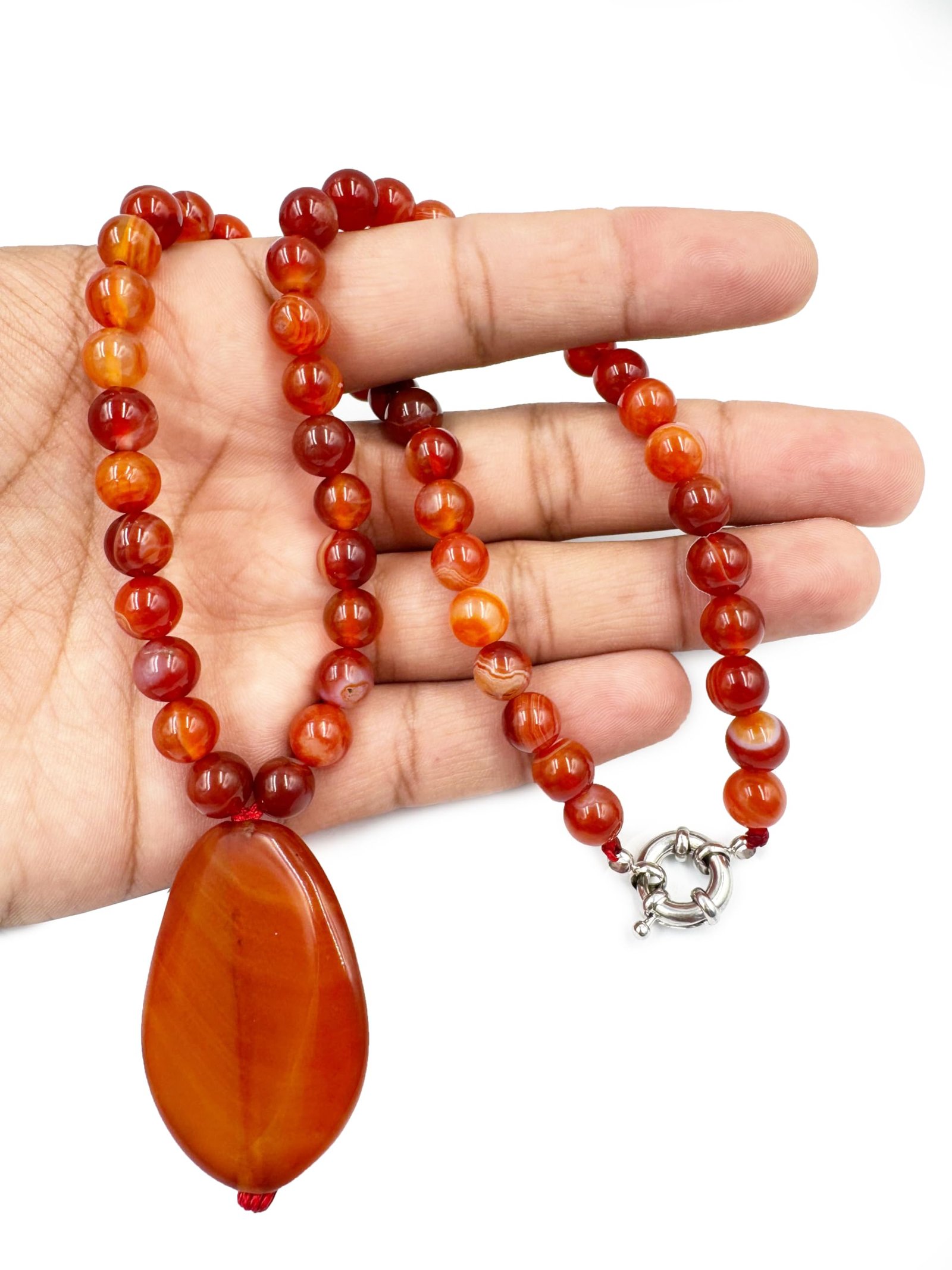 Natural Carnelian Beads & Pendant Necklace – Vitality & Motivation Healing Jewelry with Metal Clasp