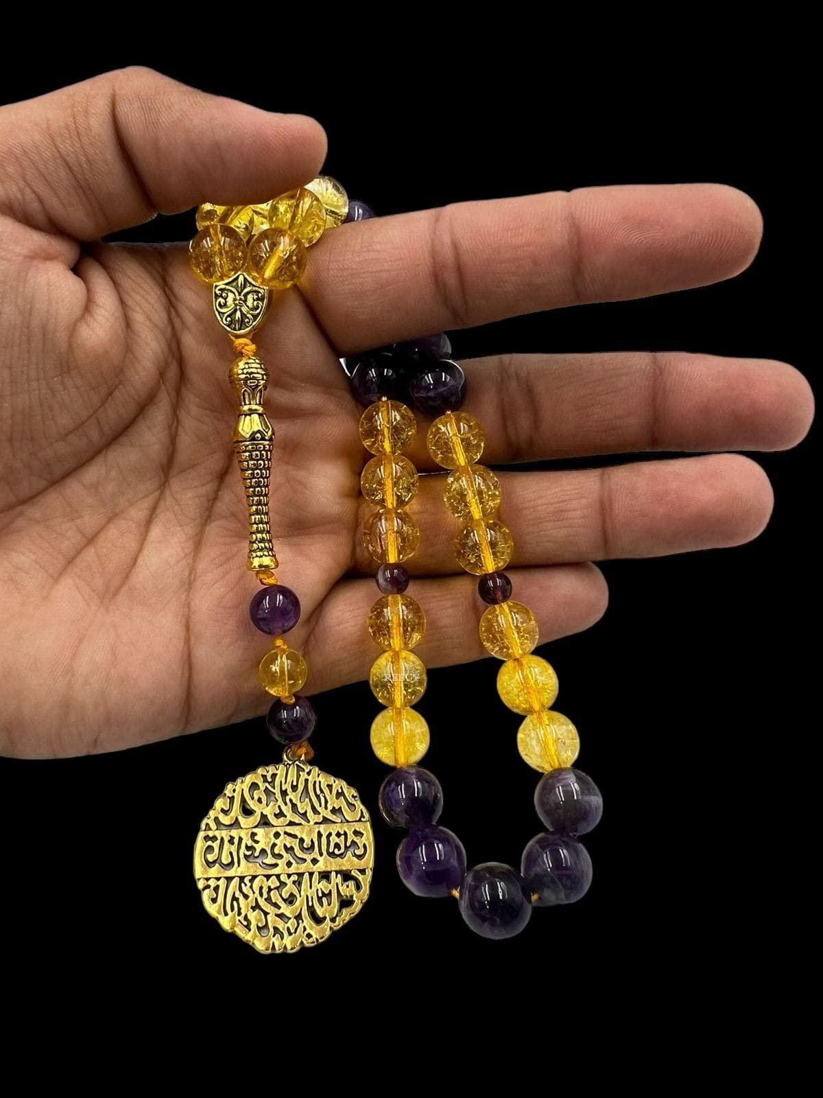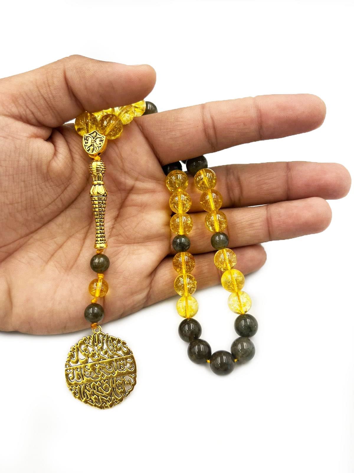 Natural Citrine Labradorite 33 Beads Stone Prayer Tasbih Misbaha | For Serenity, Peace & Positive Energy, Gift Box Included | Islamic Gift, Bracelet or Necklace | Bead Size 10 mm