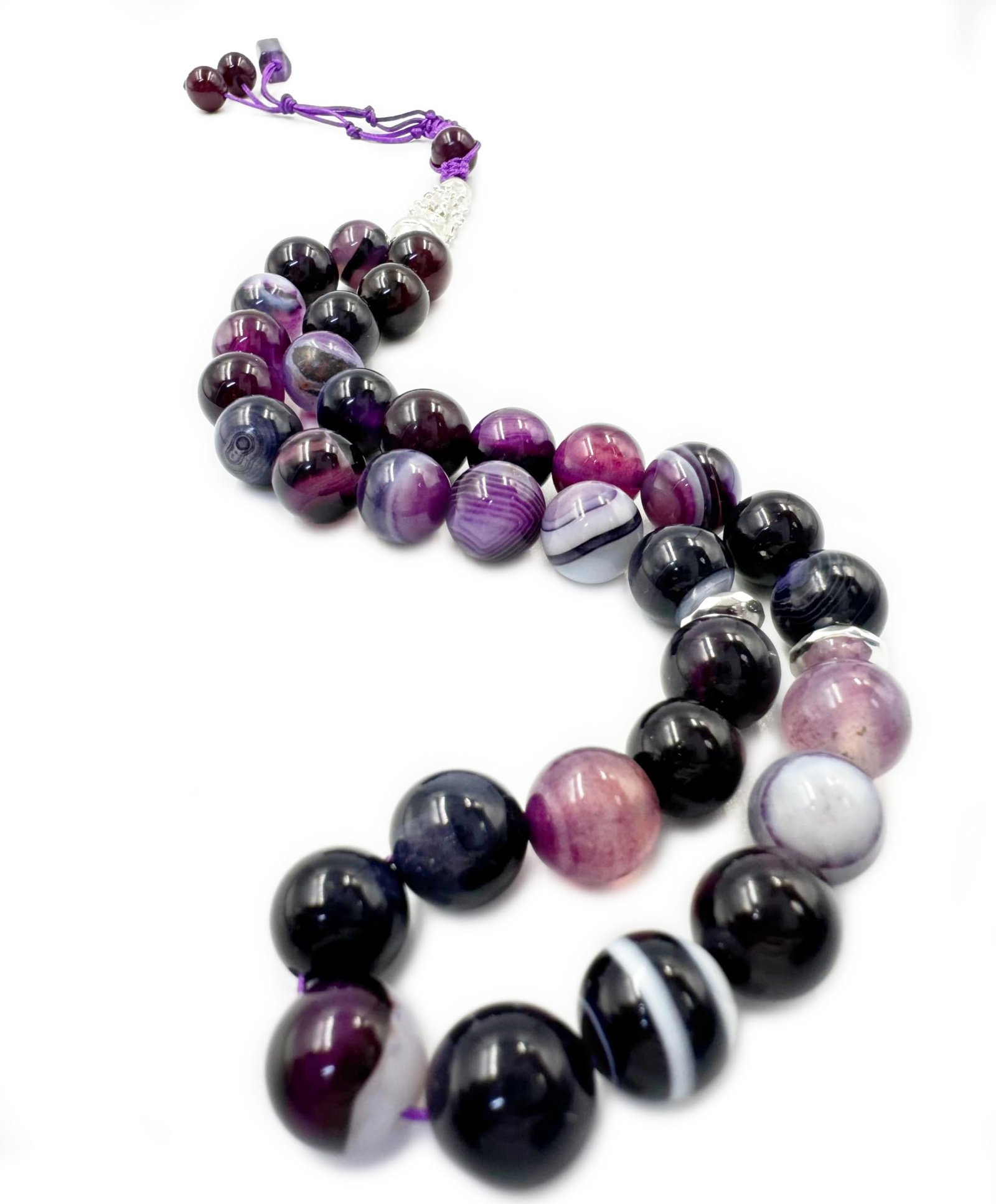 Natural Gemstone Islamic Prayer Tasbih | 33 Beads of Purple Stripe Agate | Handcrafted with Wooden Gift Box | Premium Quality for Meditation & Dhikr | Enhances Focus & Serenity