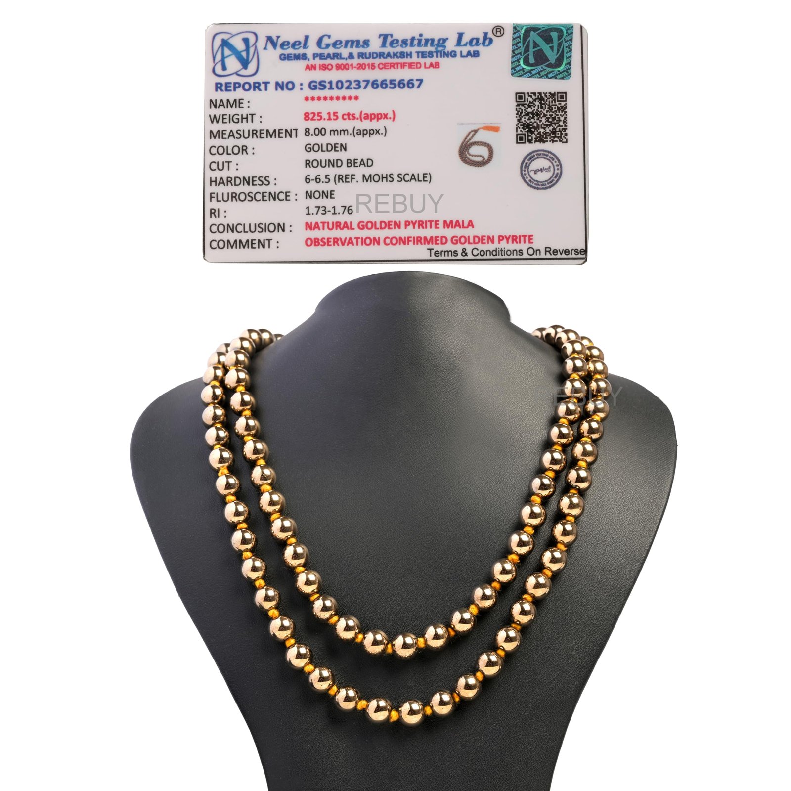 Natural Golden Pyrite 108-Bead Mala (8mm) – Wealth, Abundance & Luck Japa Necklace