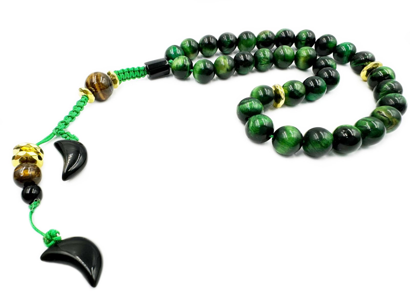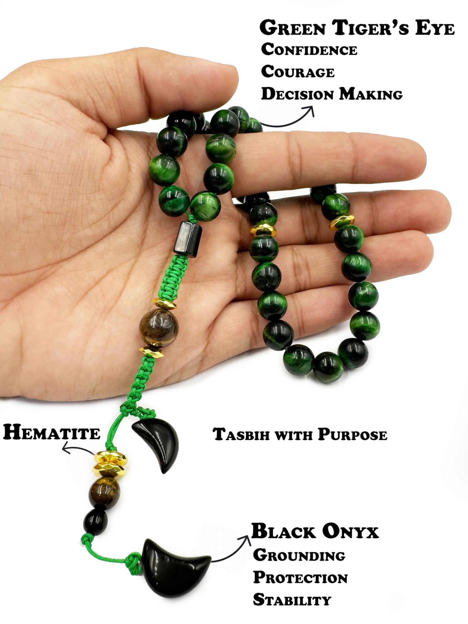 HANDCRAFTED GREEN TIGER’S EYE STONE TASBIH: Each bead in this Tasbih is meticulously handcrafted from Natural GREEN TIGER’S EYE STONE ensuring a unique and high-quality prayer accessory.