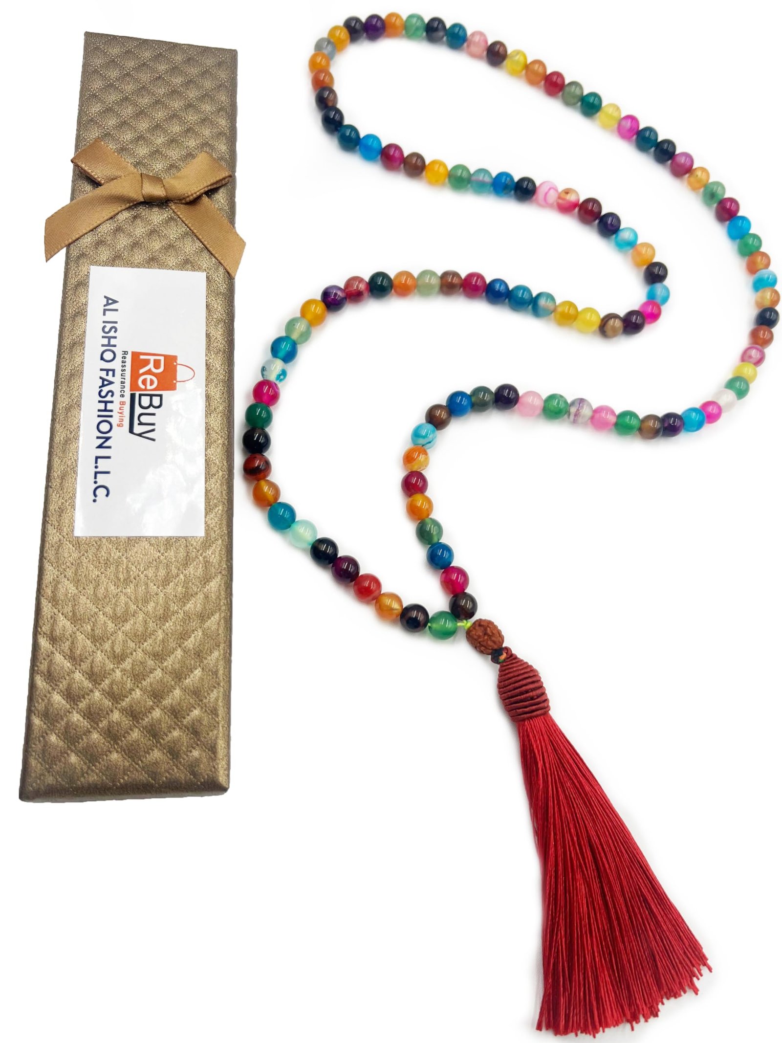 - Boho Necklace Style: Beautifully designed with natural multi-color beads, this mala doubles as a stylish Boho necklace that looks beautiful and brings peace & serenity to the wearer.