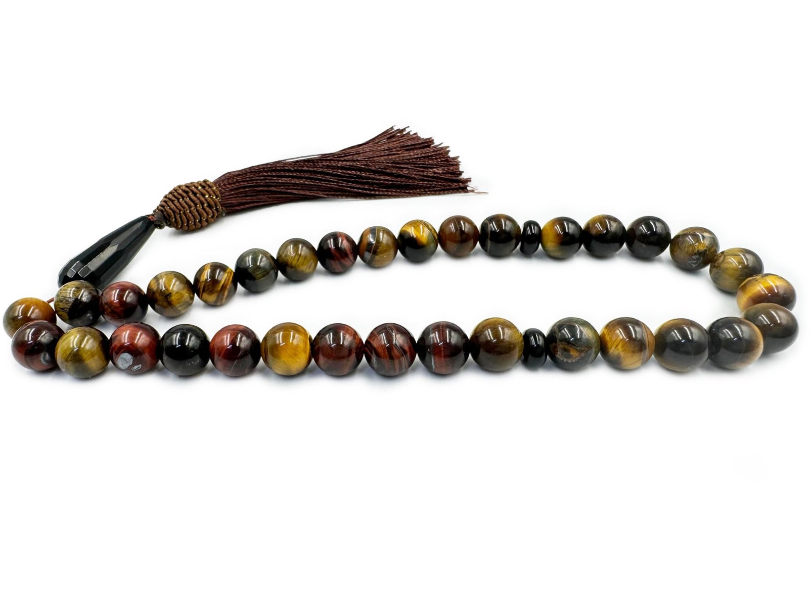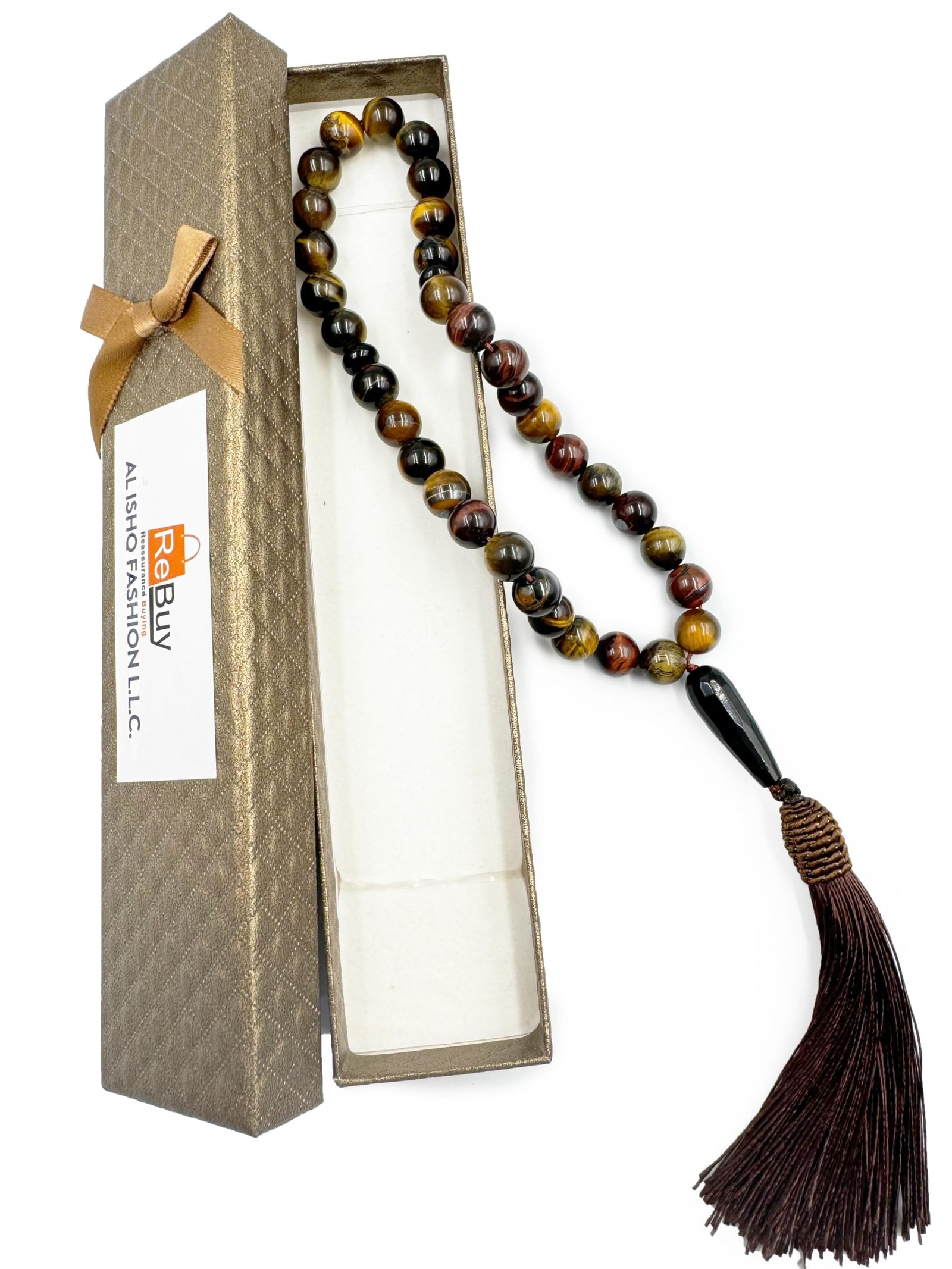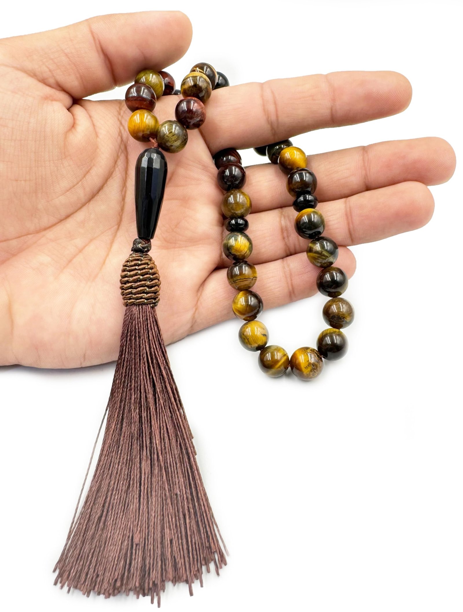 Natural Multi Tiger Eye Stone Islamic Tasbih Prayer Rosary Beads | Handcrafted Multi Tiger Eye Beads Tasbeeh for Meditation & Prayer | Ideal Gift for Muslims | 33 Beads Tasbeeh