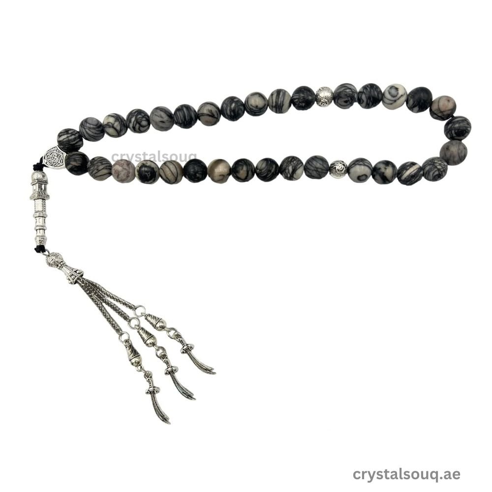 • PEACEFUL MEDITATION: Immerse yourself in tranquil contemplation with our Islamic prayer beads. The 10mm black Picasso Jasper stones are carefully selected for their calming properties, fostering a serene environment for meditation, prayer, and reflection.