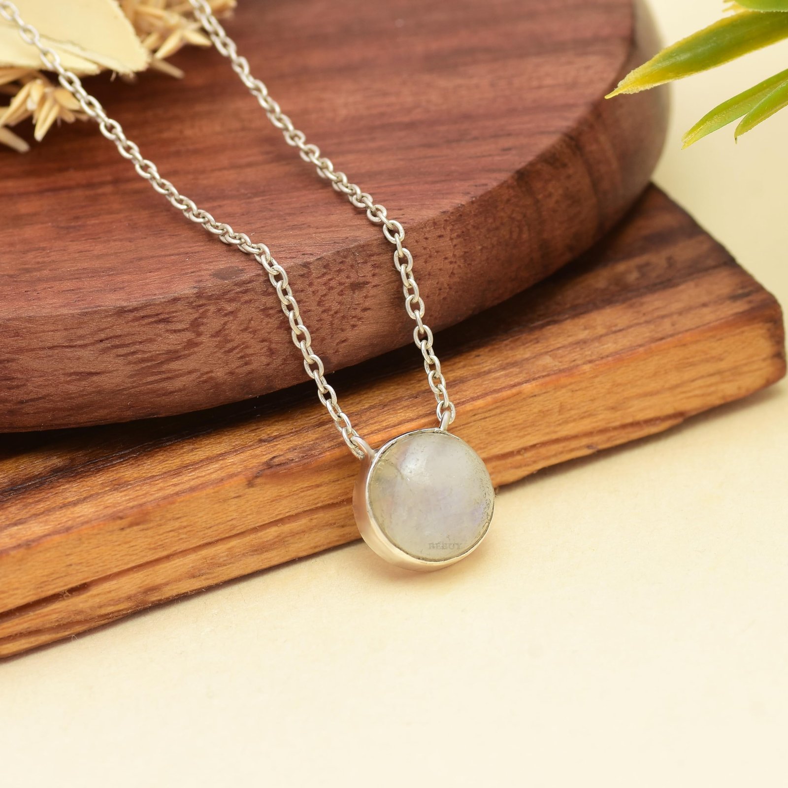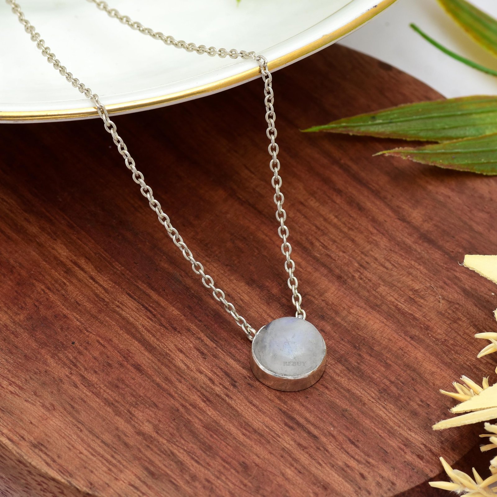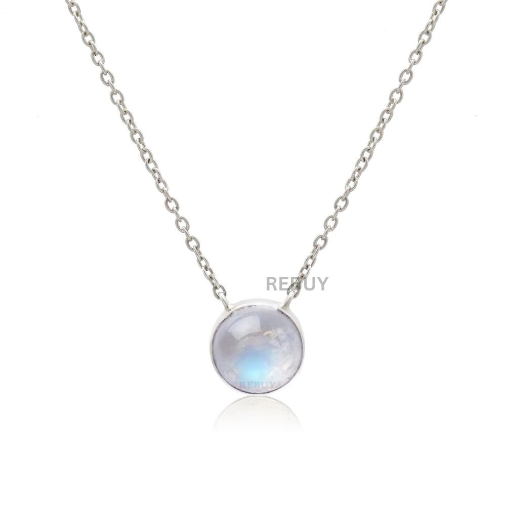 REBUY 925 Silver Chain with Natural Moonstone Silver Pendant Necklace for Women & Girls