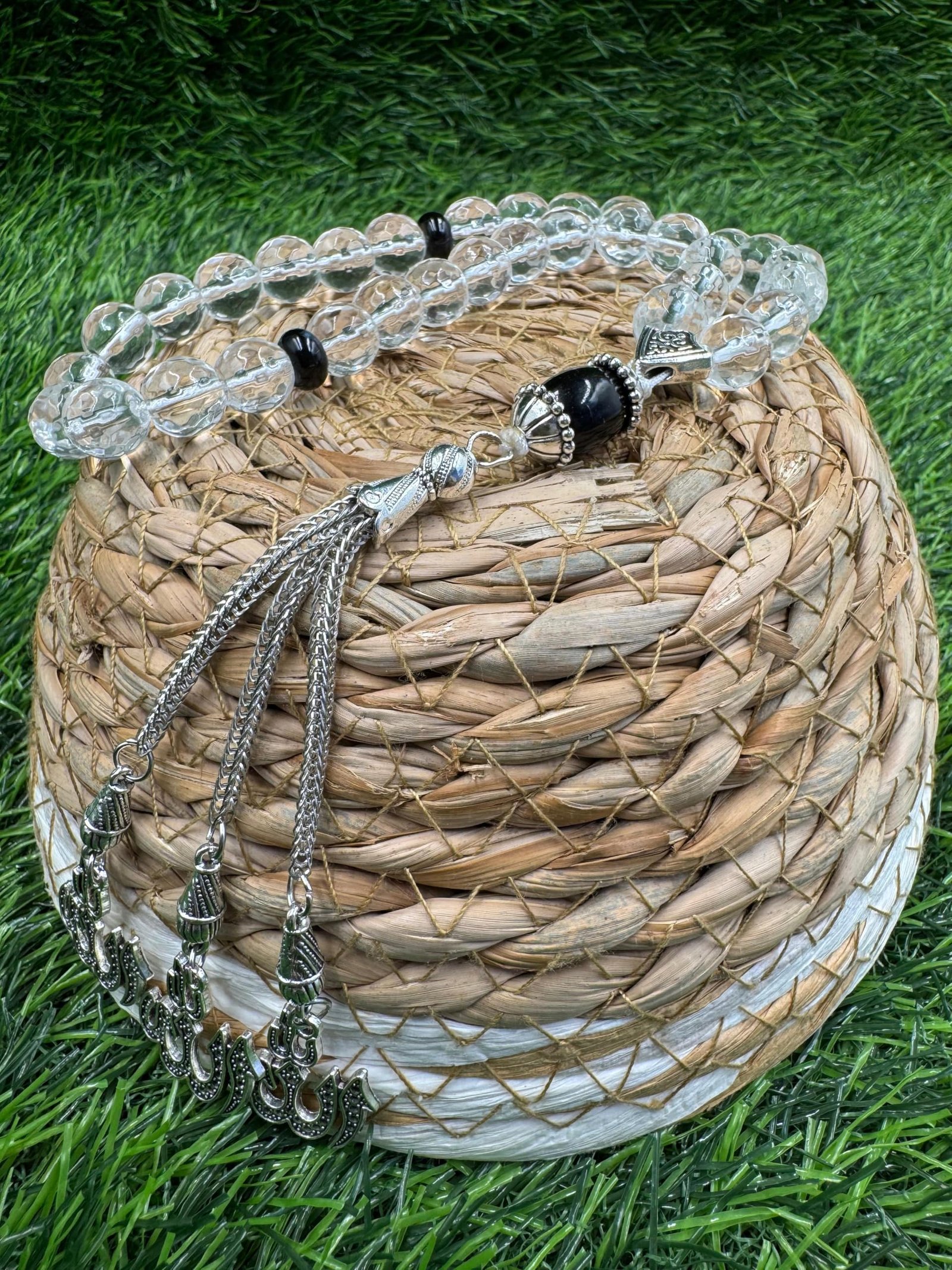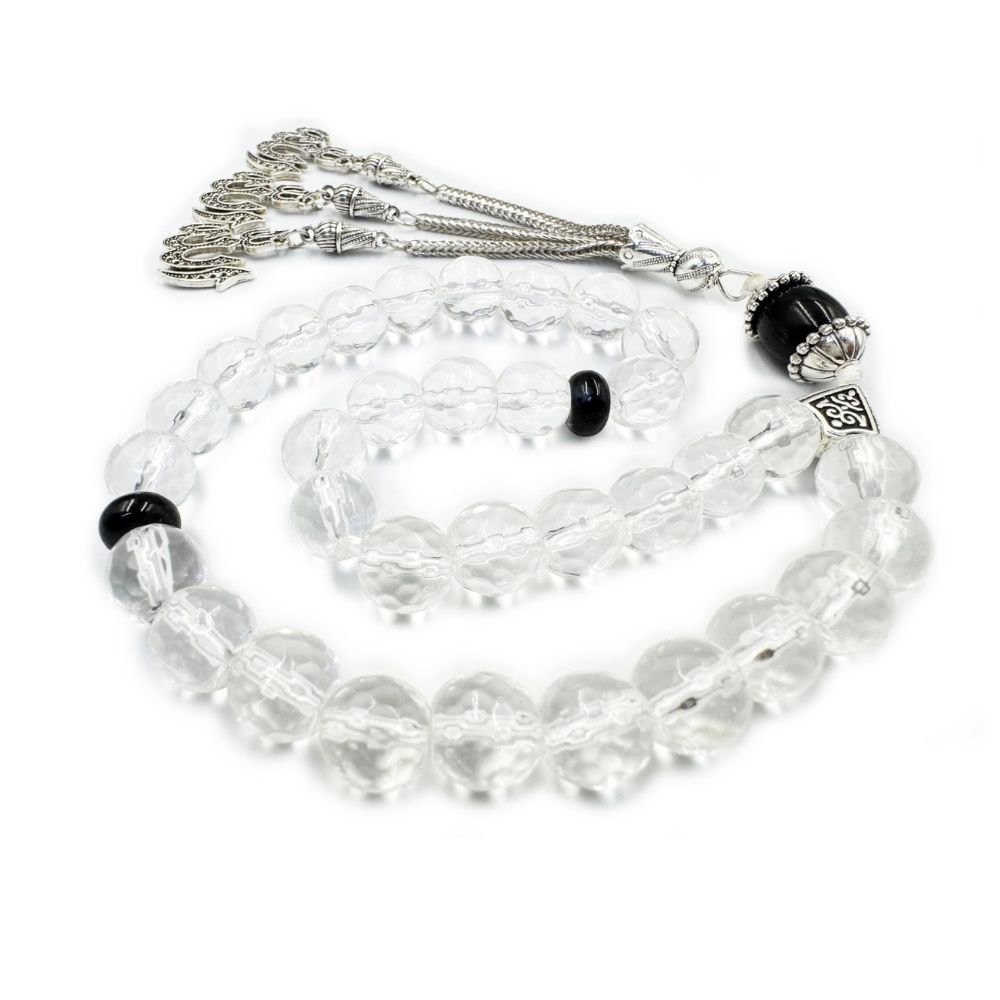 - NATURAL CLEAR QUARTZ STONE:Crafted from high-quality, natural clear quartz stone, this Islamic prayer tasbih is not only visually stunning but also imbued with natural healing properties, known for promoting peace and positive energy.