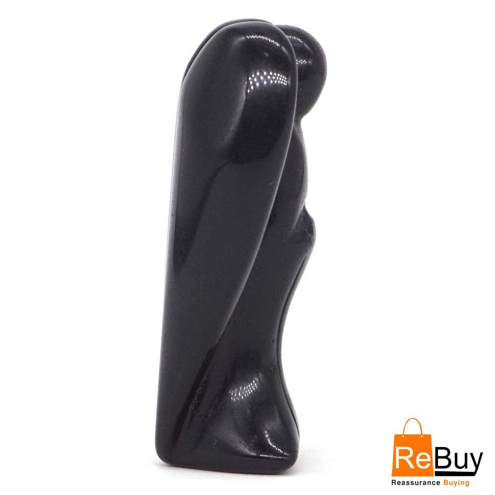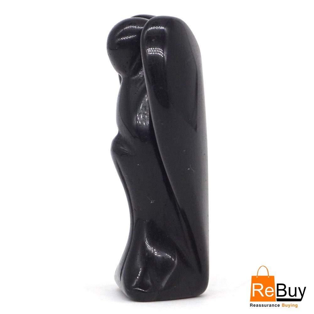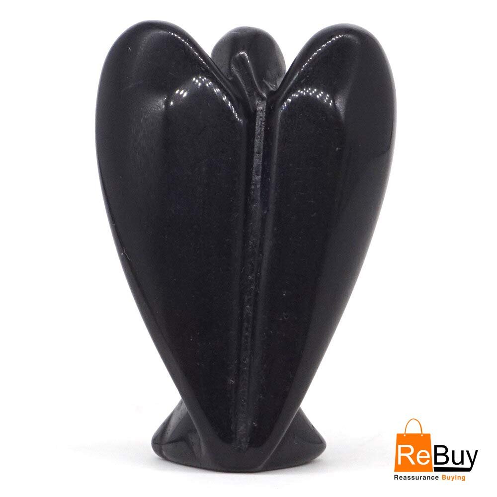 REBUY Natural Black Tourmaline Guardian Angel (2 Inch) – Hand-Carved Pocket Healing Crystal for Protection & Good Luck