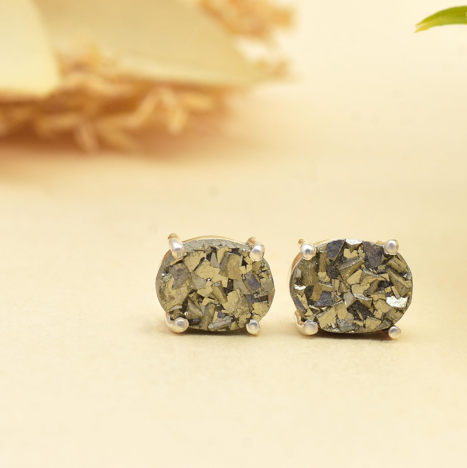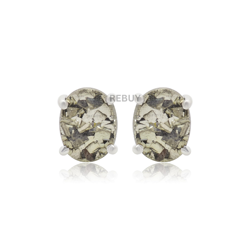 REBUY 925 Silver Pyrite Gemstone Earrings Crystal Healing Stone Jewelry Earrings for Women & Girls