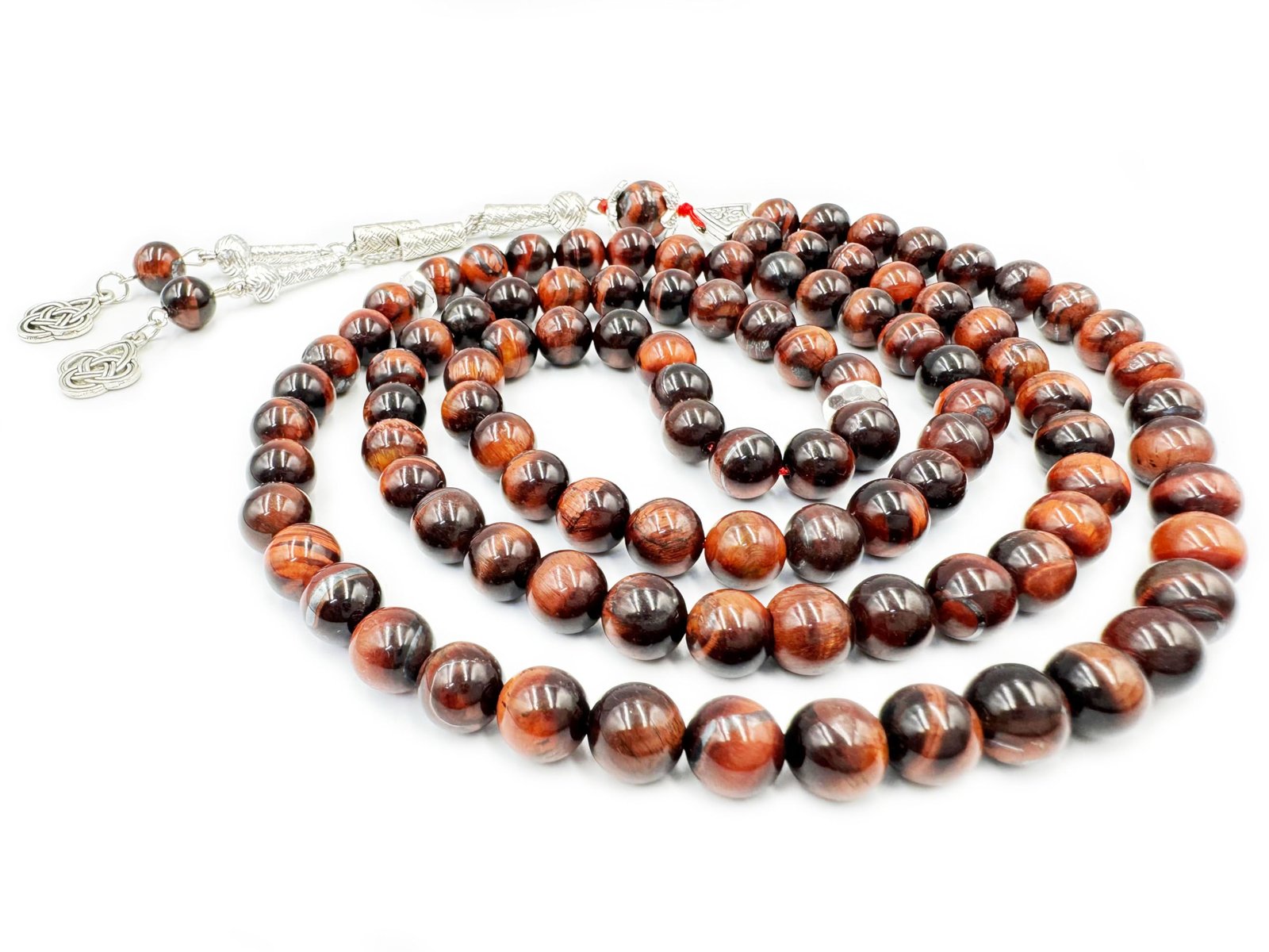 Red Tiger Eye Tasbih, 99 pcs Islamic Misbaha, Turkish Prayer Beads, Sufi Muslim Tesbih Favors, Salatu Subha Tasbeeh Gift, 8 mm Rosary