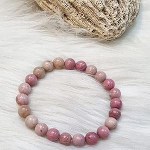 Premium Quality Rhodochrosite Stone Beads: This gorgeous 8mm Quartz beaded bracelet contains high grade, smooth, and round genuine 8mm Crystal beads. Each bead in this bracelet are handpicked and strung on high quality elastic stretch cord to ensure the best quality. Our goal is to always carry genuine, high grade gemstone beads.
