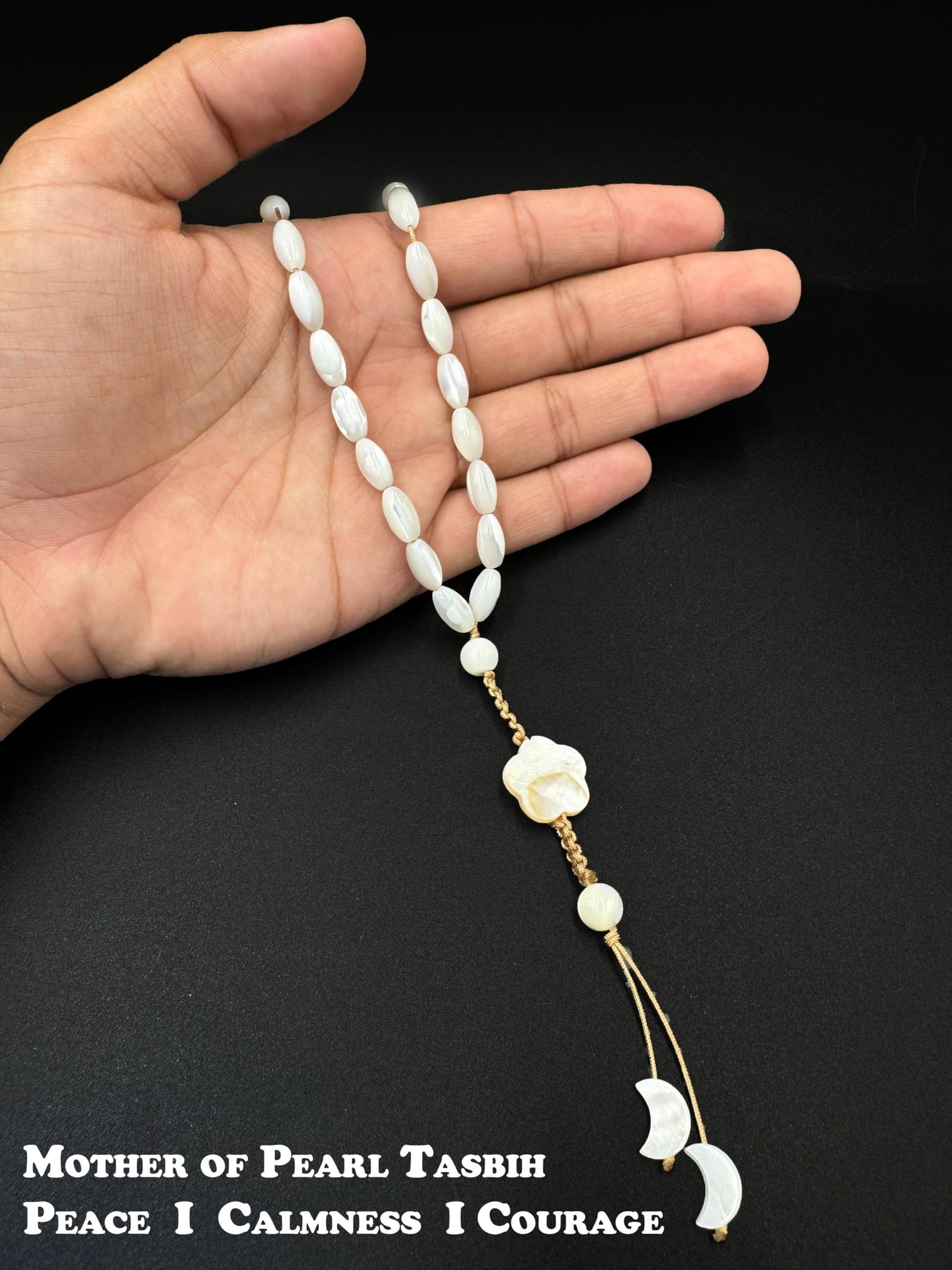 Its soft iridescent glow and refined appearance make it perfect for daily worship or as a meaningful spiritual gift, Expertly hand-strung with high-quality thread for long-lasting strength — ideal for everyday spiritual use, Crafted from 100% natural Mother of Pearl, each bead is smooth, comfortable, and gentle on the fingers during dhikr or meditation.