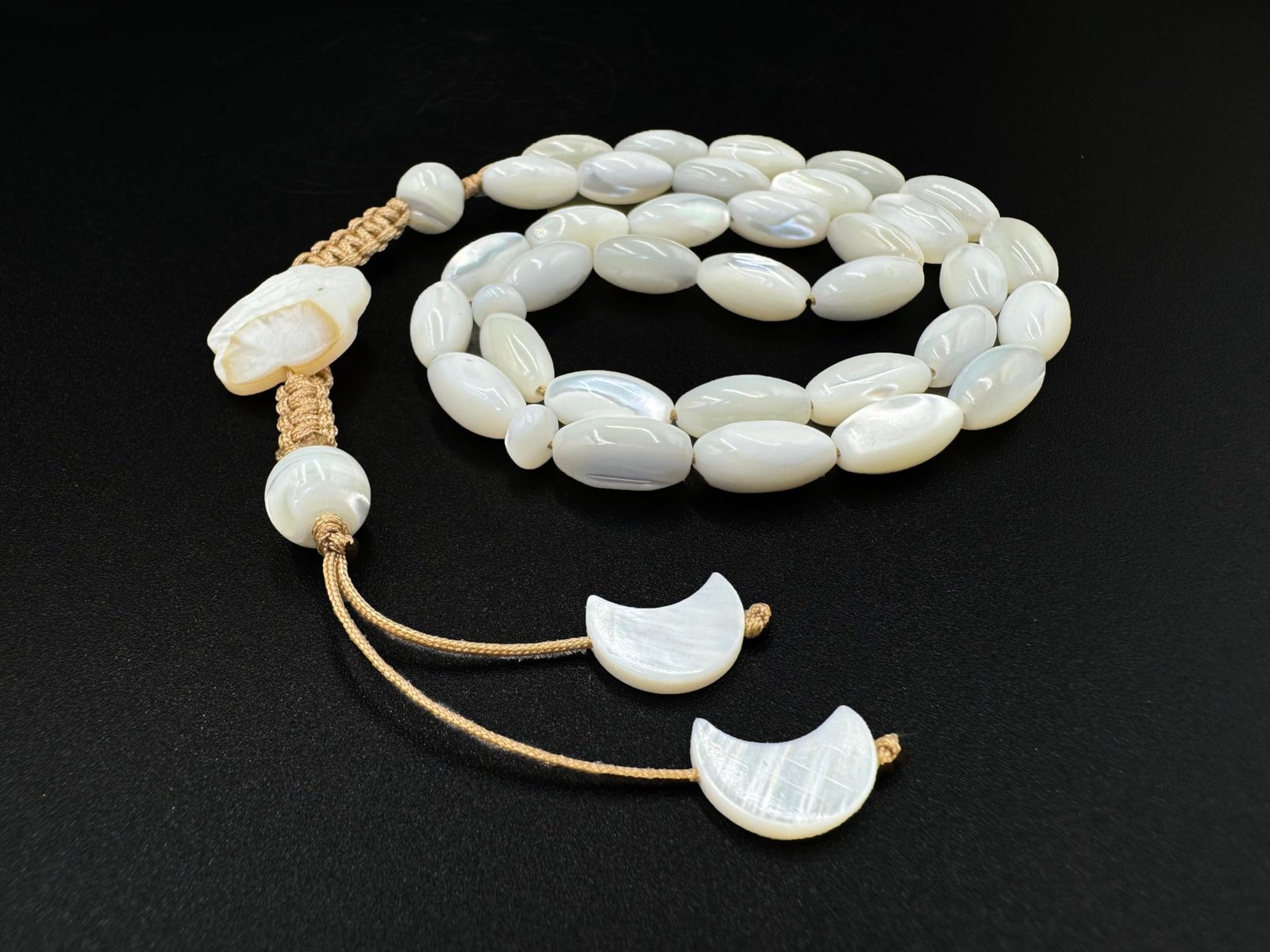 HIGH-QUALITY CRAFTSMANSHIP: Each bead is meticulously crafted to highlight the natural beauty of mother of pearl, ensuring a durable and long-lasting tasbeeh.